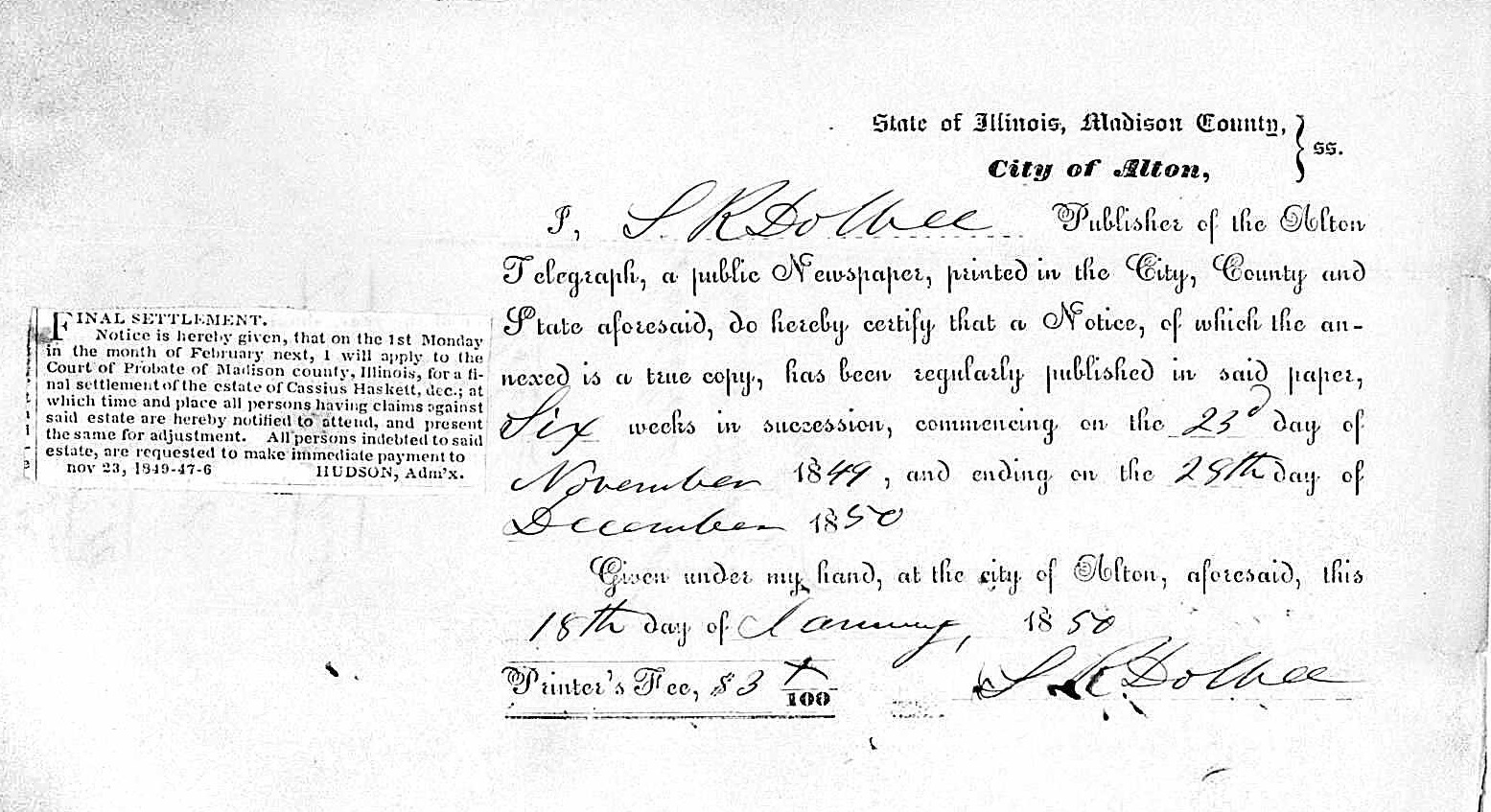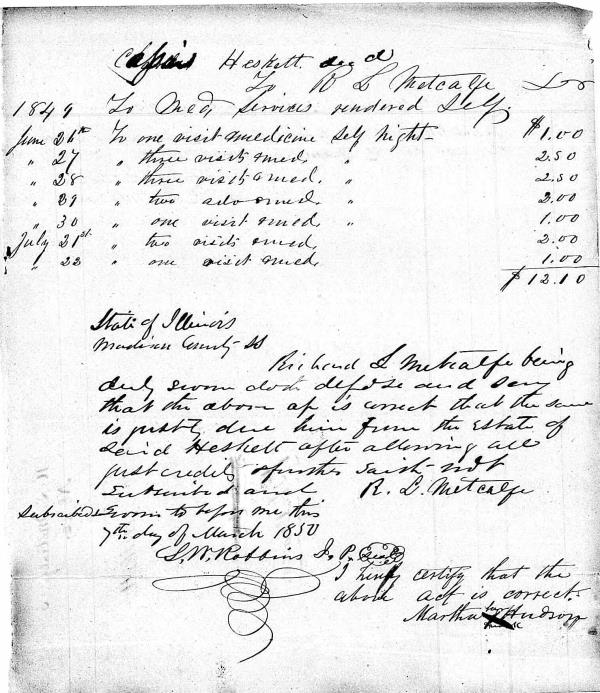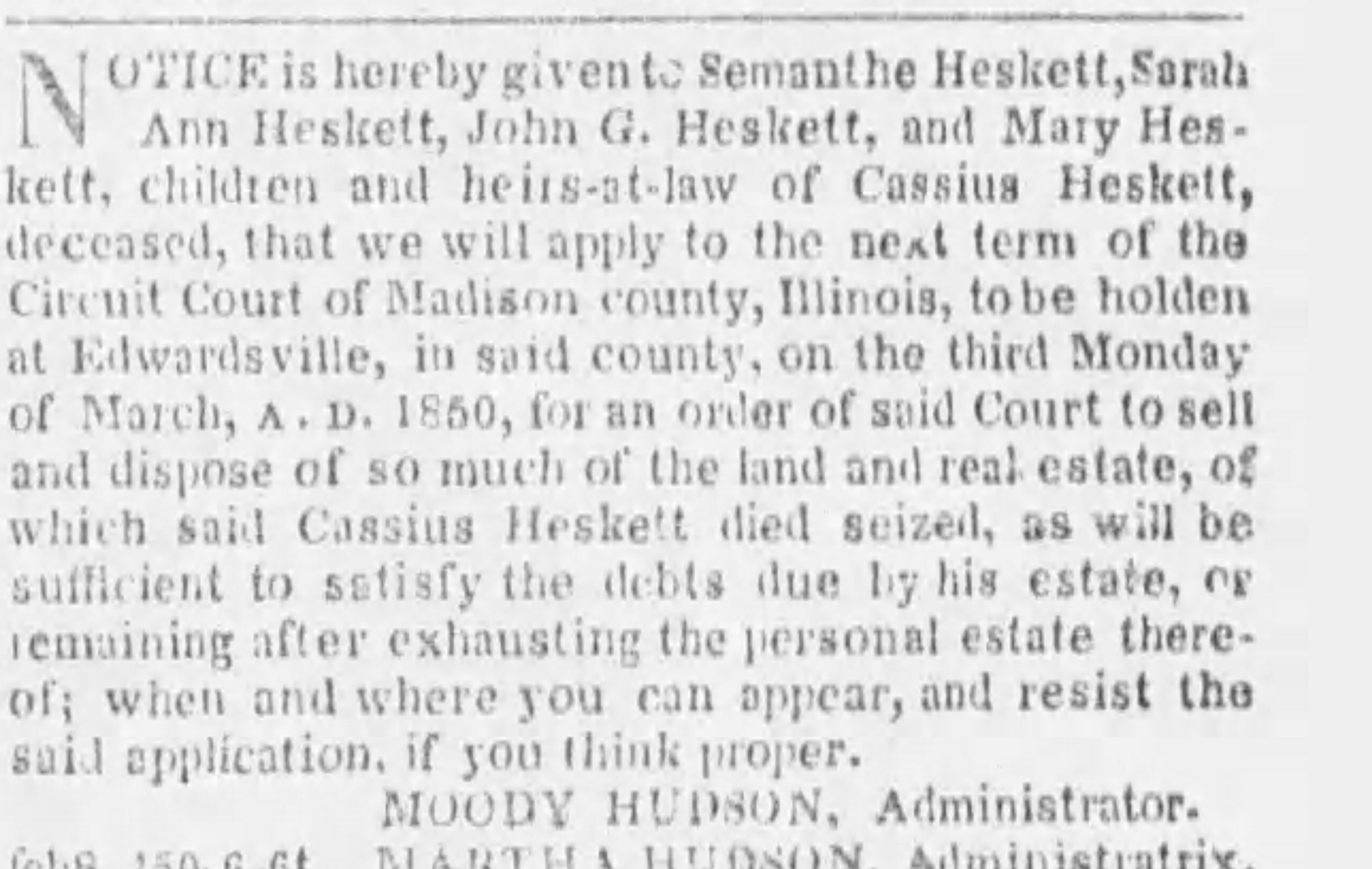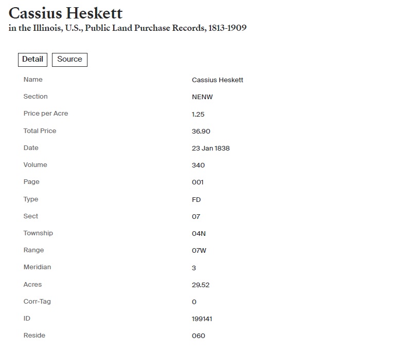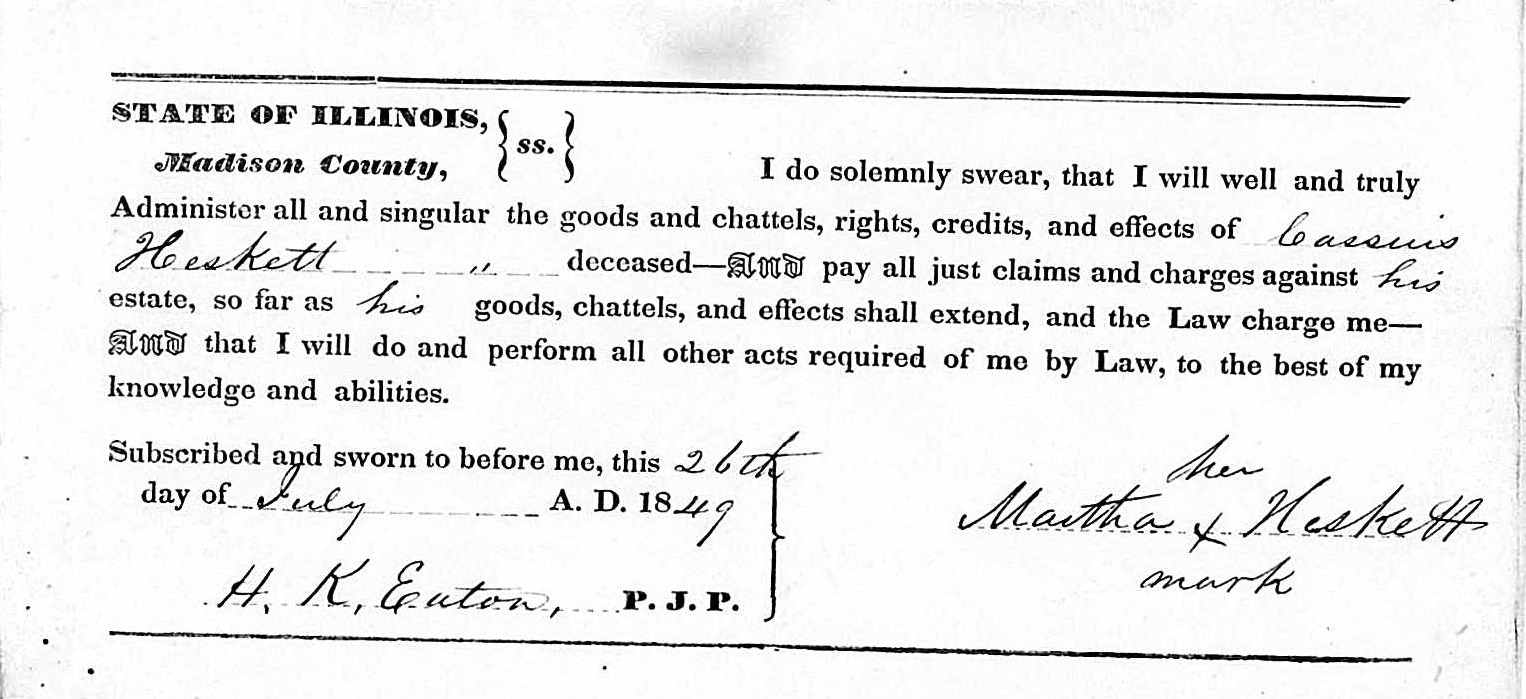 Cassius Heskett 1850 Death Census Illinois,, Line 19