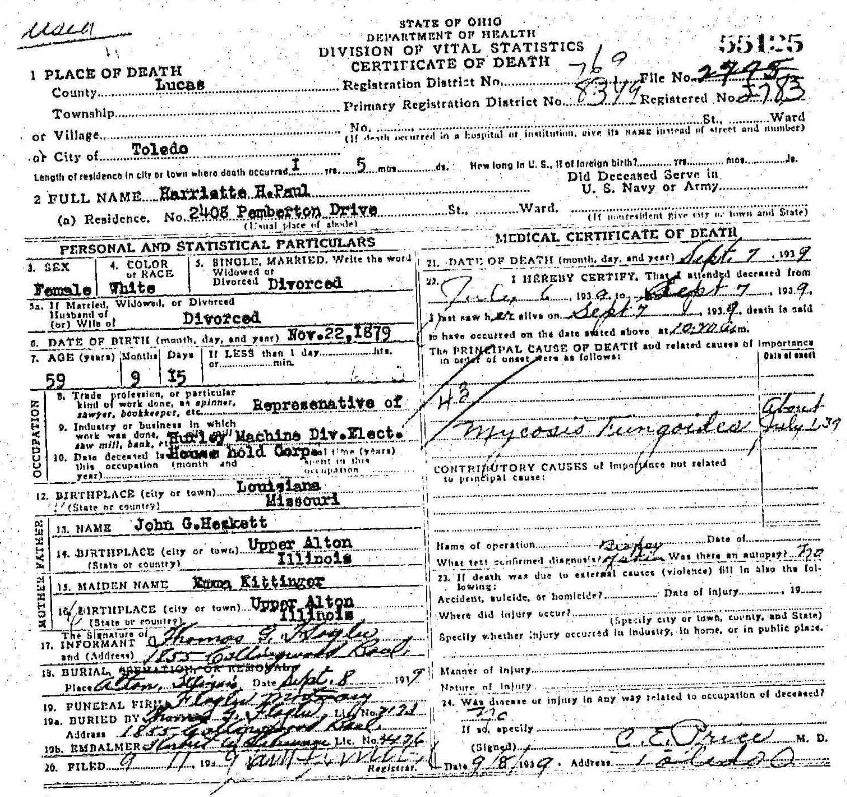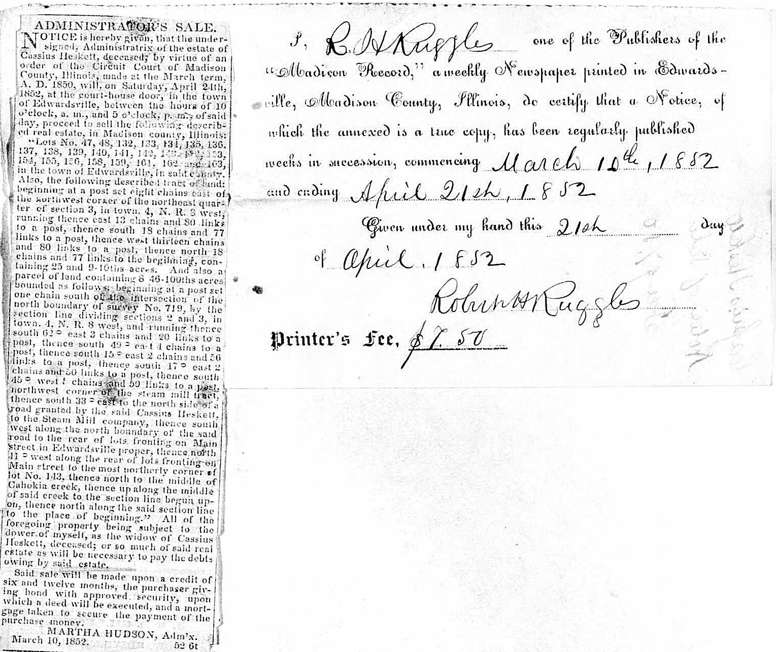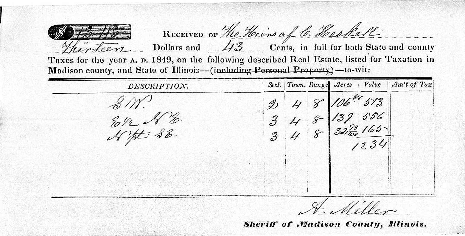 Cassius Heskett 1850 Death Census Illinois,, Line 19