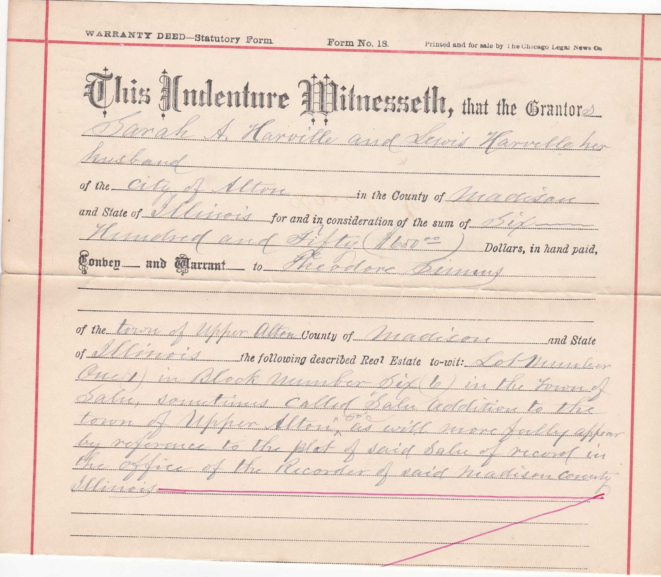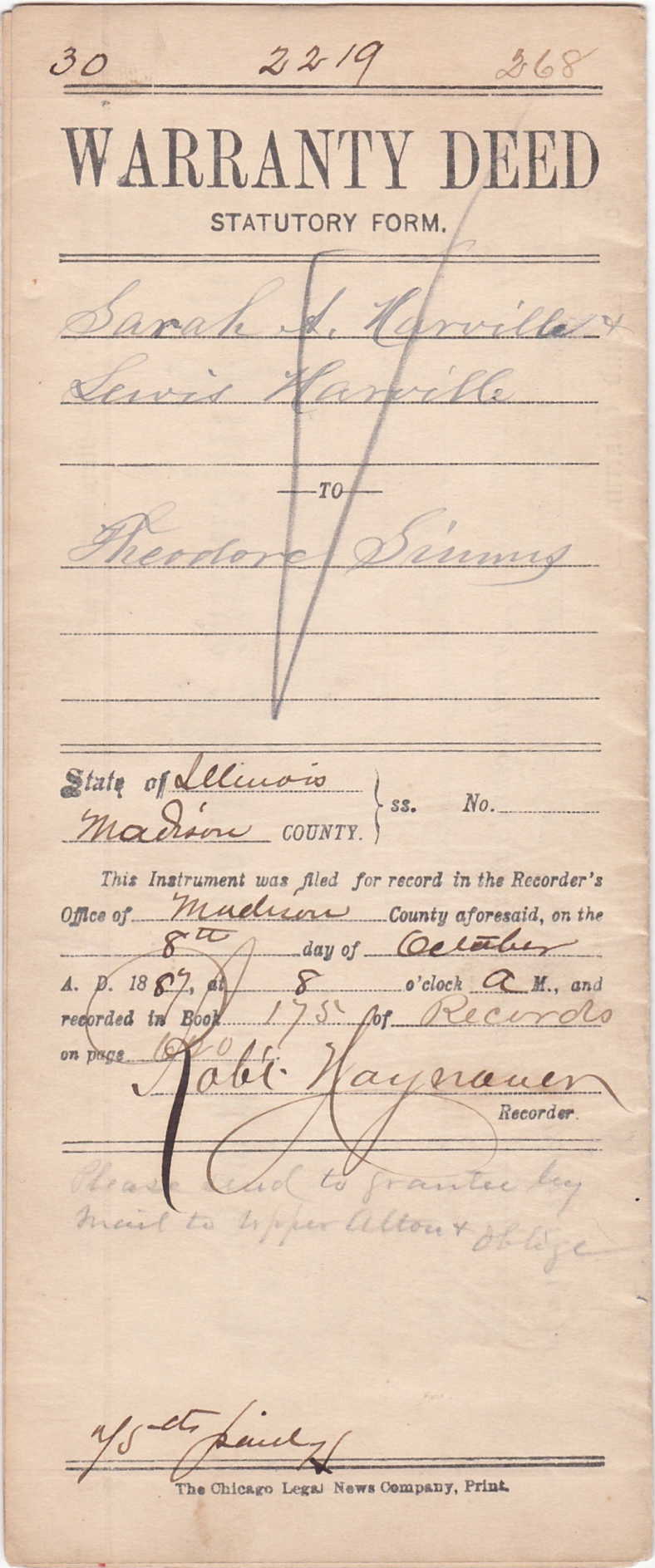 1887 Warranty Deed Page 1
