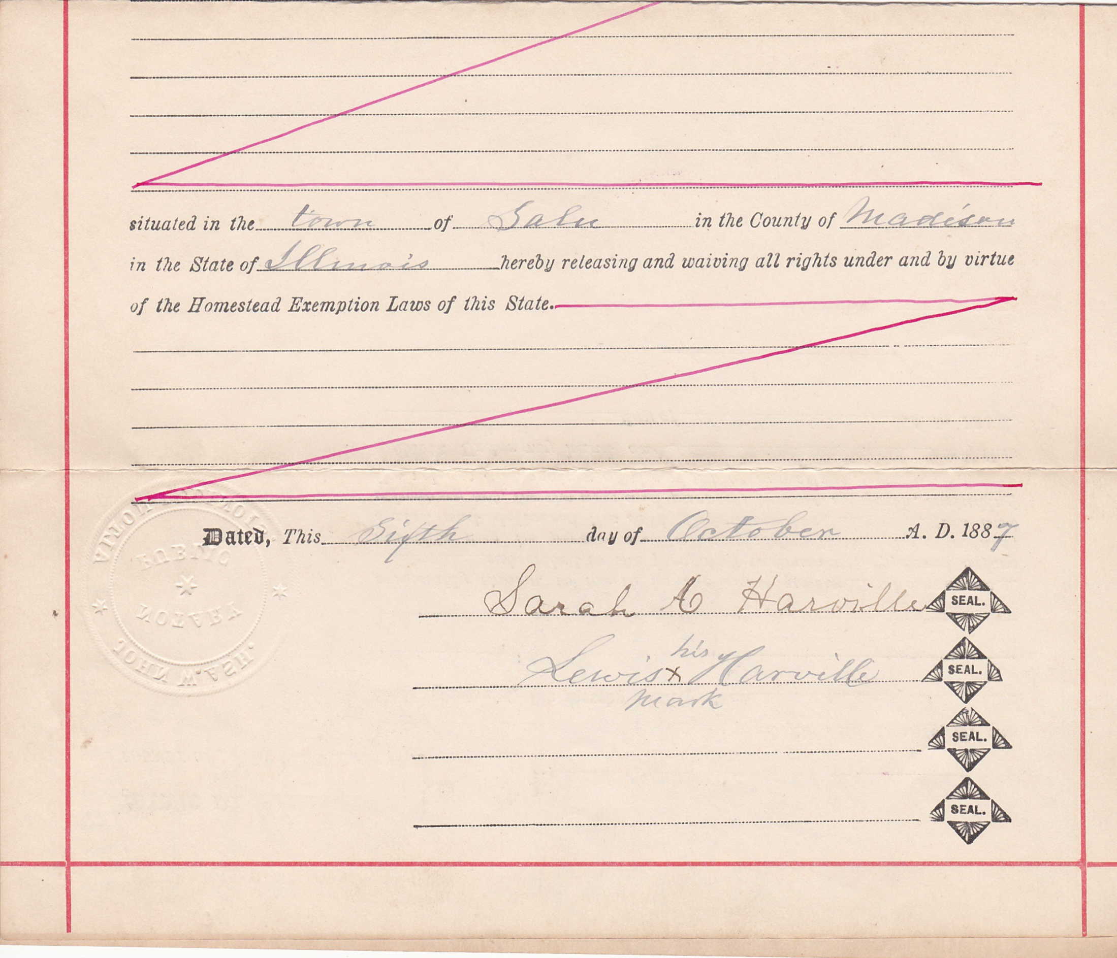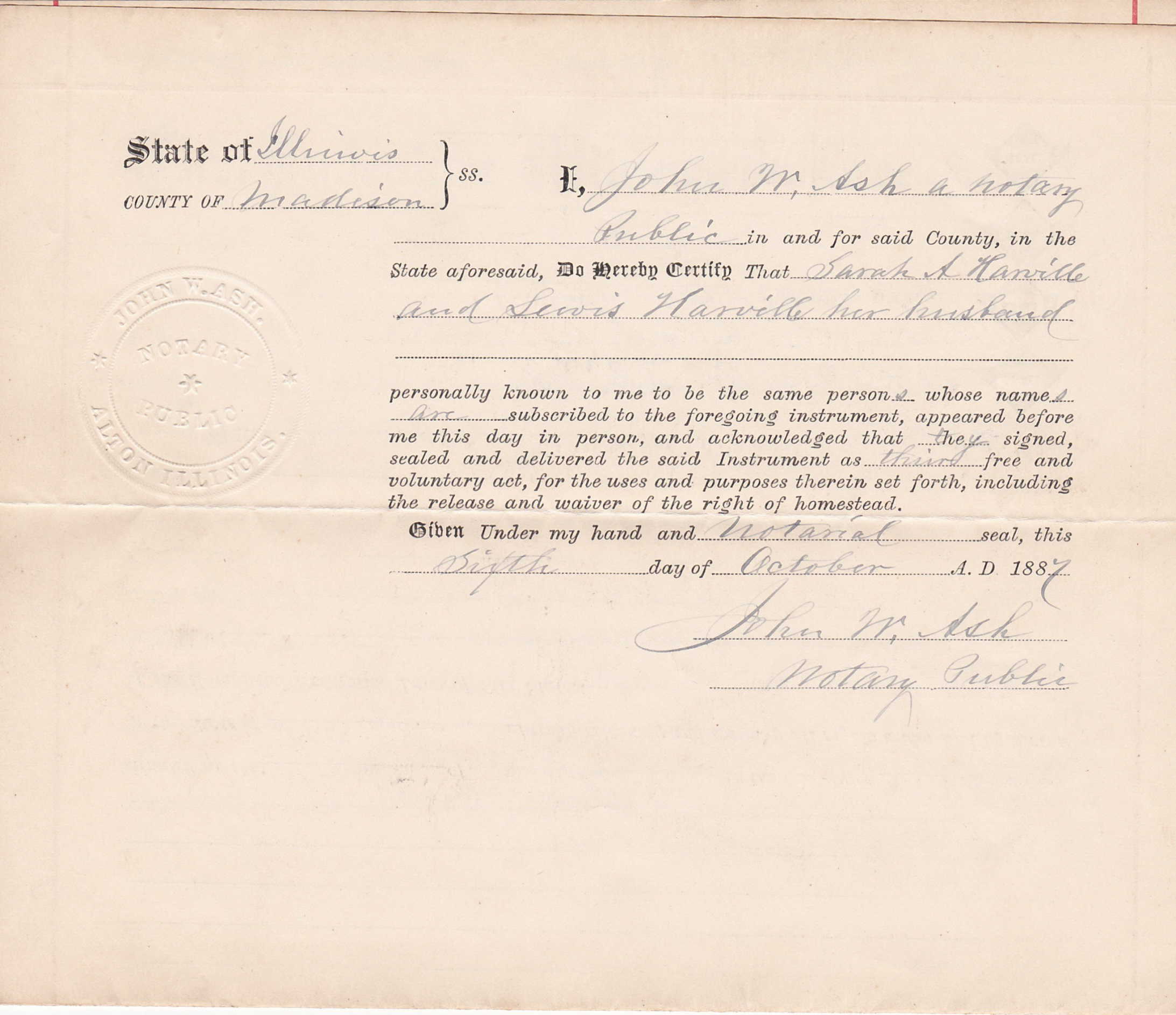 Louis Harville were married. She died on September 30, 1918, at age ~81, in Alton, Madison, Illinois, USA. She was buried in Alton Cemetery, Alton, Illinois.