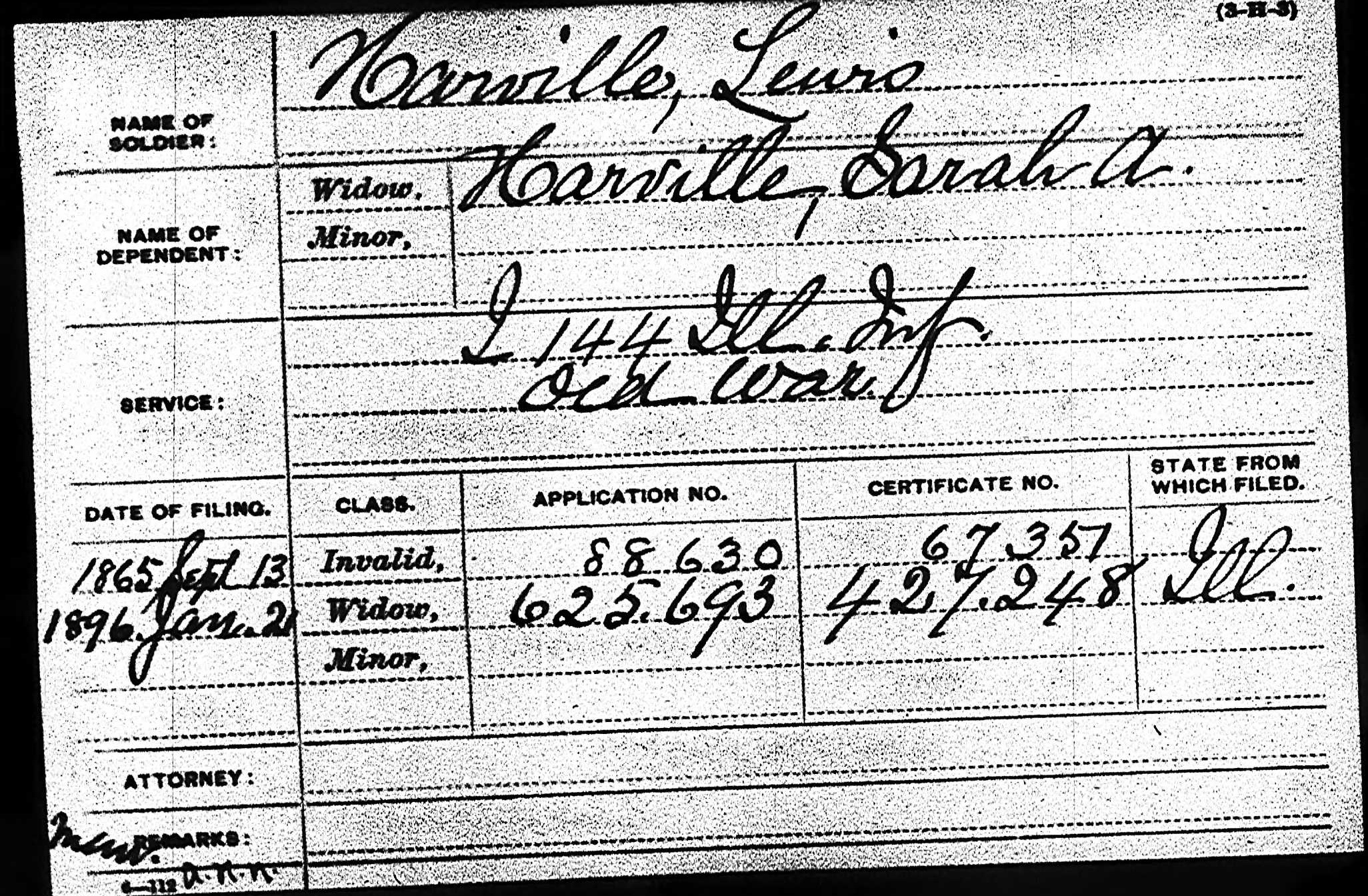 Harville Family 1865 State Census Illinois, Line 22