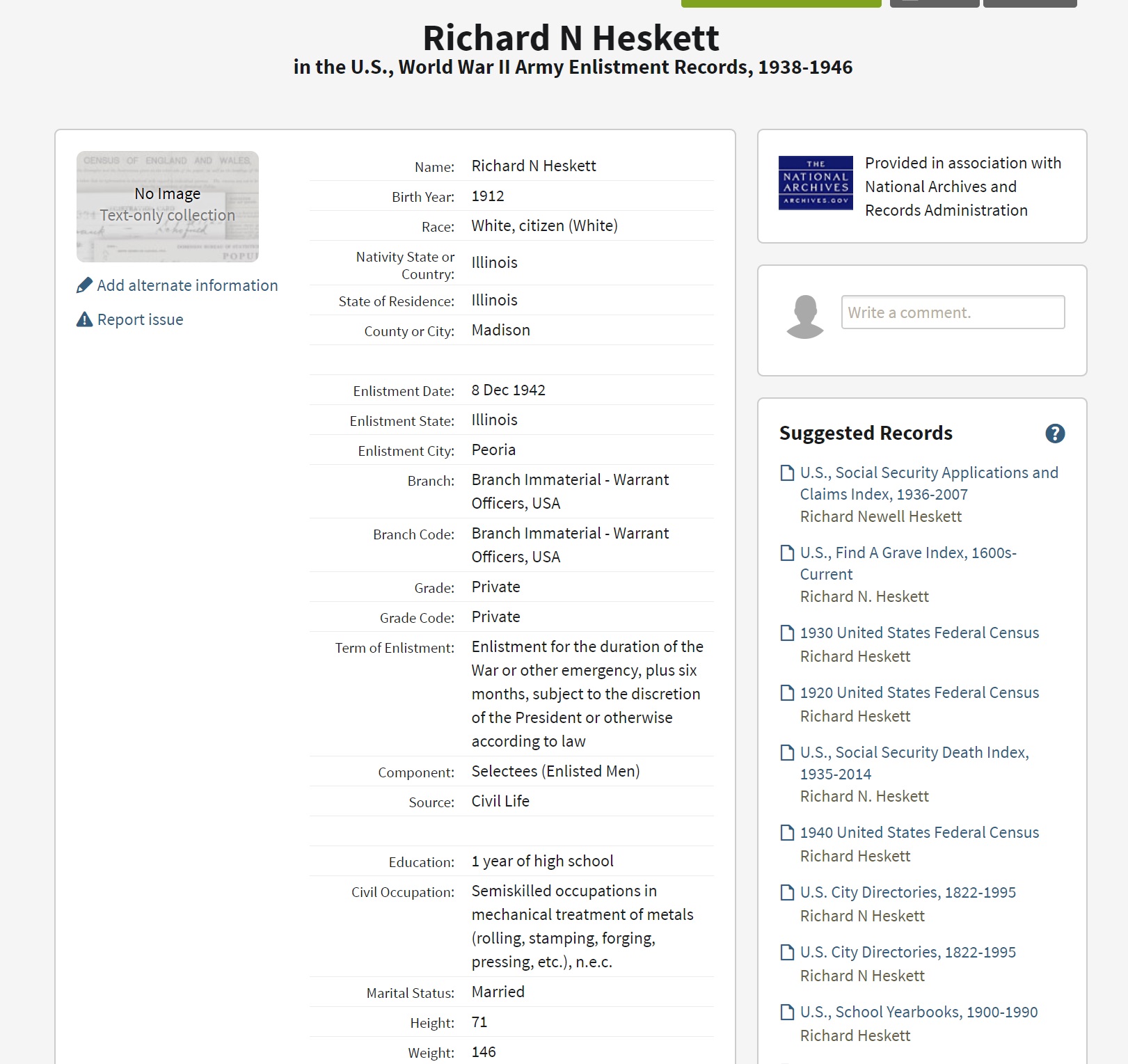 Richard Newell Heskett was born on August 4, 1912 in Alton, Madison, Illinois, USA. He and