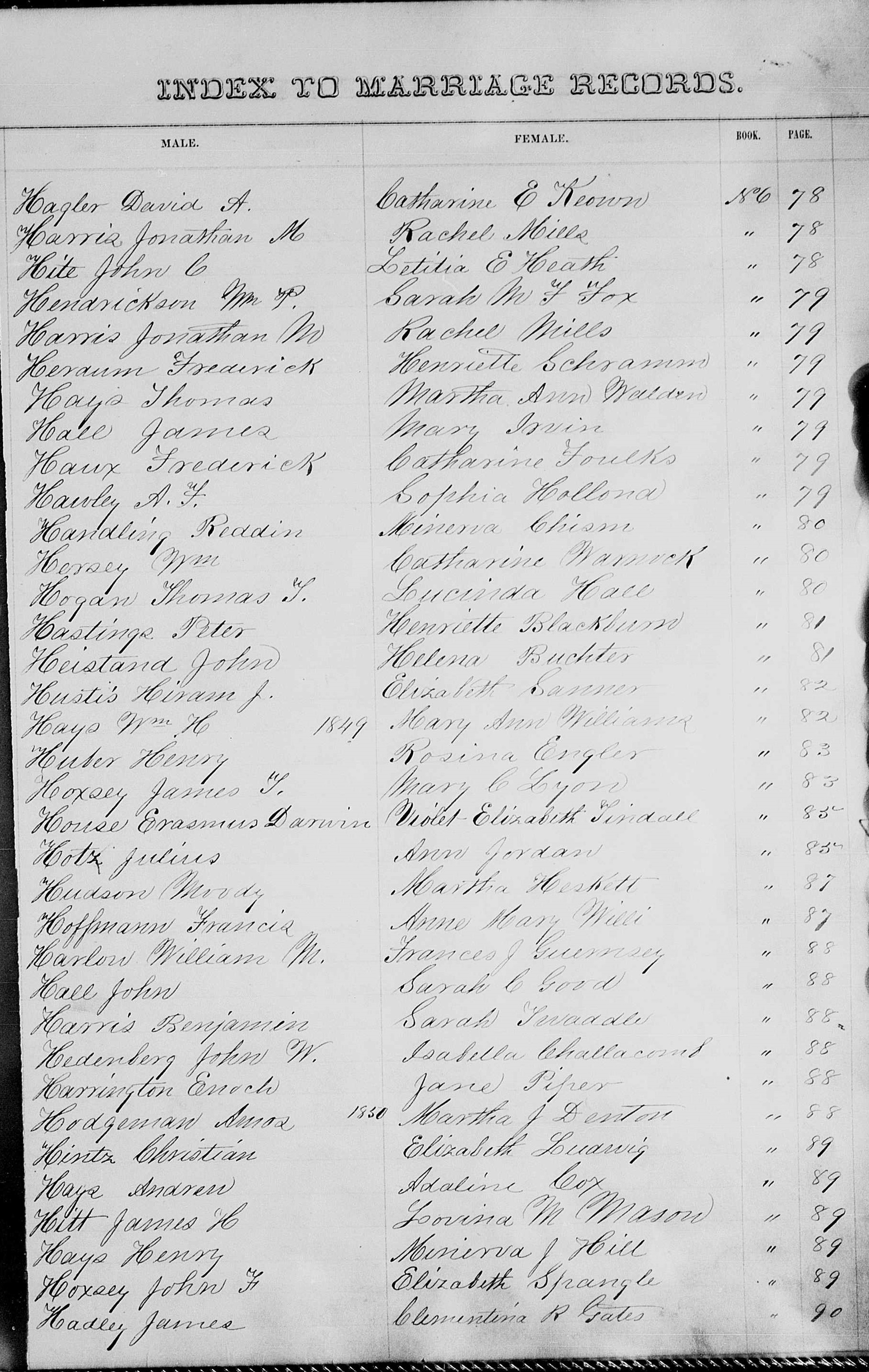 1849 Marriage Index Record