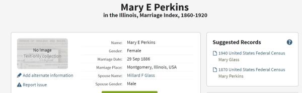 Mary Catherine Perkins were married on September 29, 1886 in Montgomery, Illinois, USA. He died on August 24, 1935, at age ~80, in Hillsboro, Montgomery, Illinois, USA.