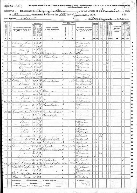 Harville Family 1870 Federal Census Illinois, Lines 21-28