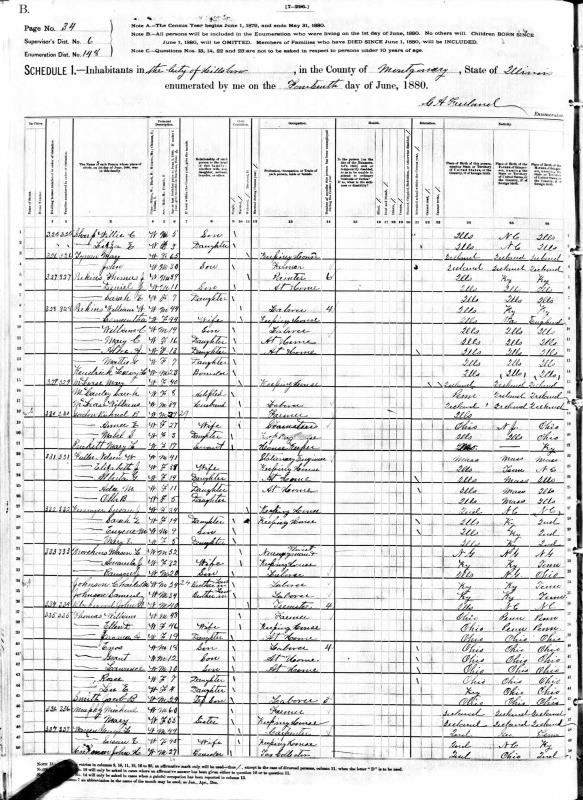 Harville Family 1880 Federal Census Illinois, Lines 12-17