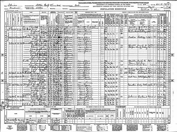 Heskett Family 1940 Federal Census Illinois, Lines 42-44