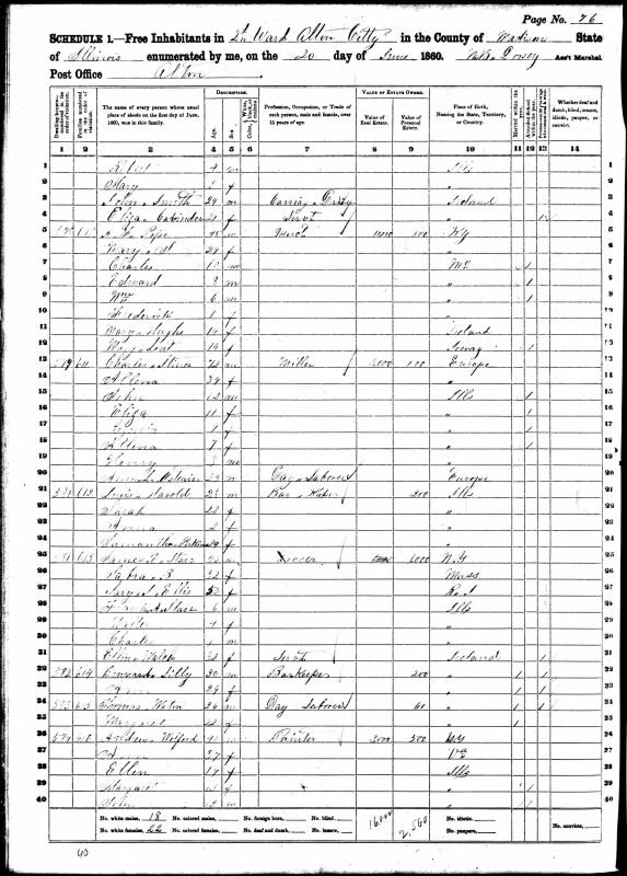 Harville Family 1860 Federal Census Illinois, Lines 21-24
