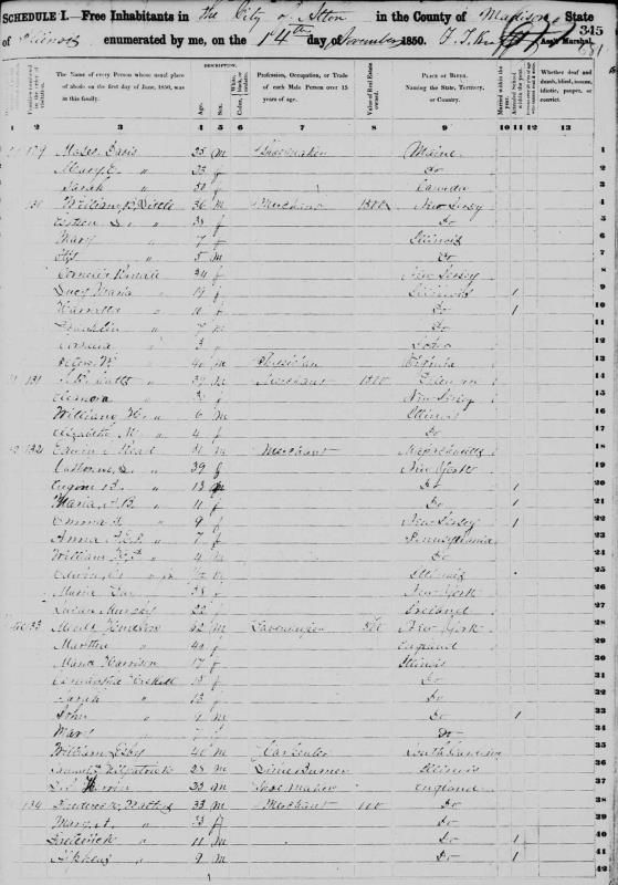 Heskett Family 1850 Federal Census Illinois, Lines 28-37