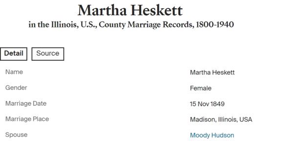 Cemantha Heskett were married on March 10, 1853 in Madison, Illinois, USA. He died.