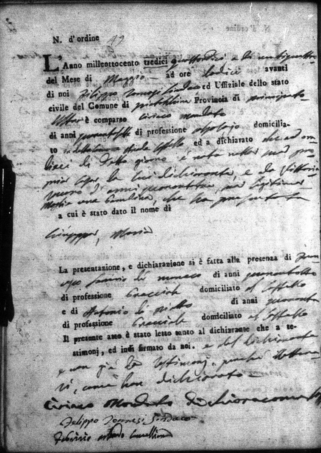 Teresa Maria Masone were married on March 13, 1818 in Pietrelcina, Benevento, Campania, Italy. He died.