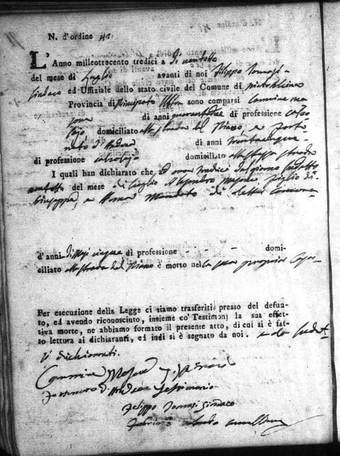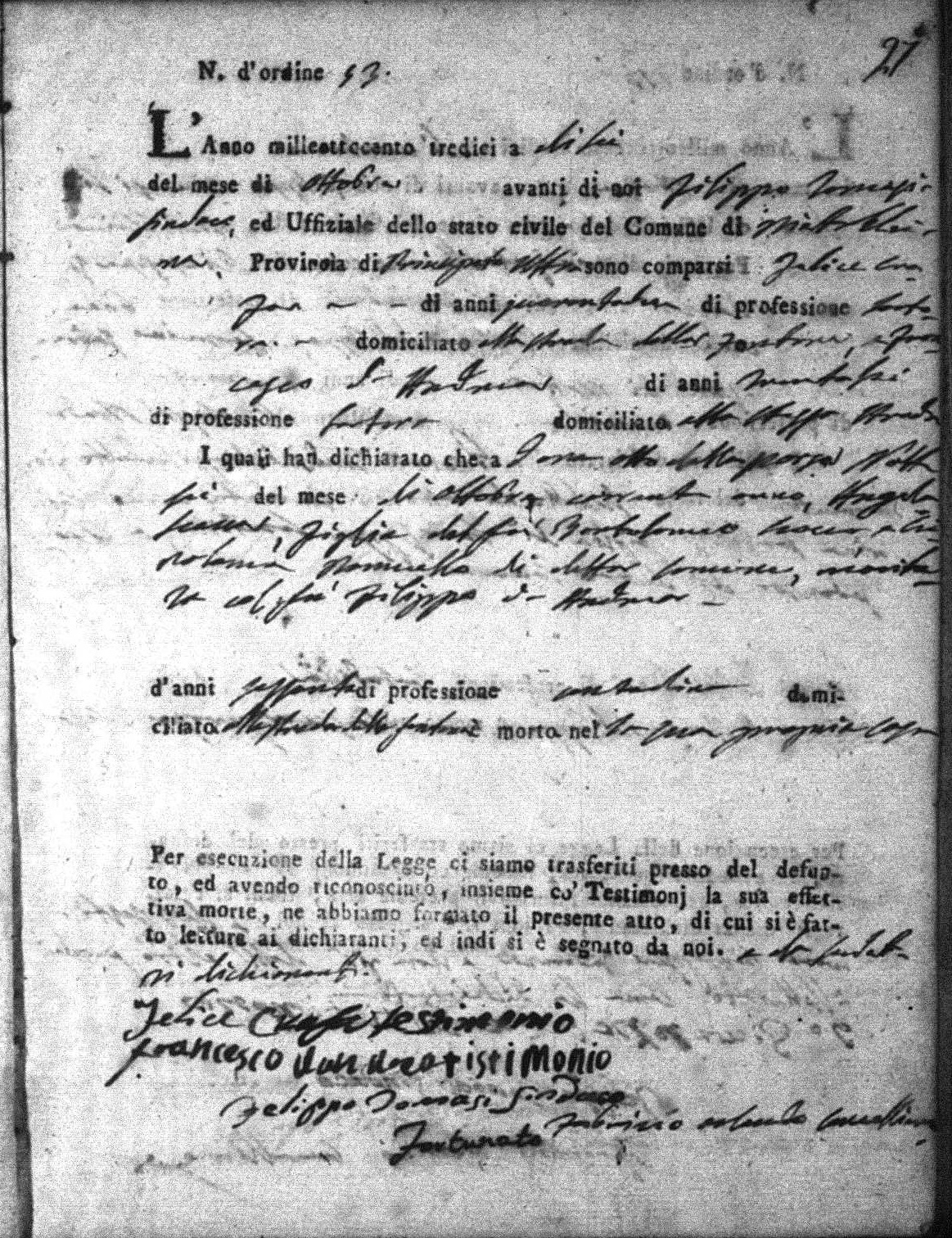 Angela Scocca were married. He died on June 16, 1795, at age ~45, in Pietrelcina, Benevento, Campania, Italy.