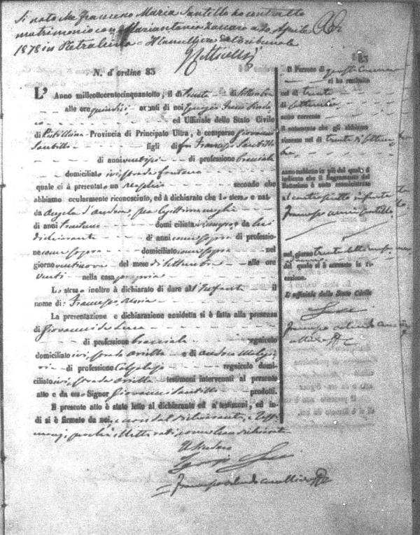 Giovanni Maria Santillo were married on May 23, 1857 in Pietrelcina, Benevento, Campania, Italy. She died.