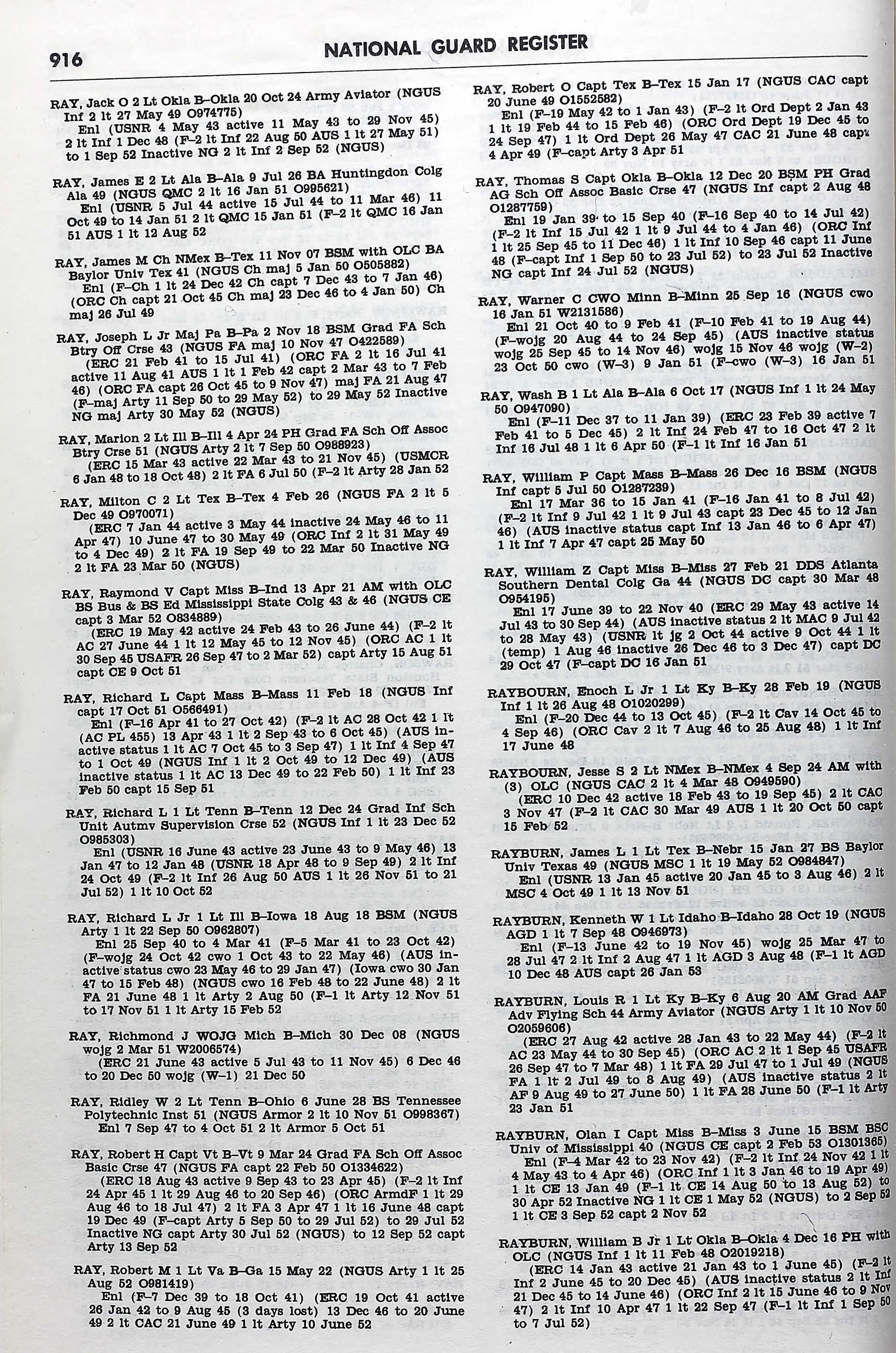 Richard Ray National Guard Register Index