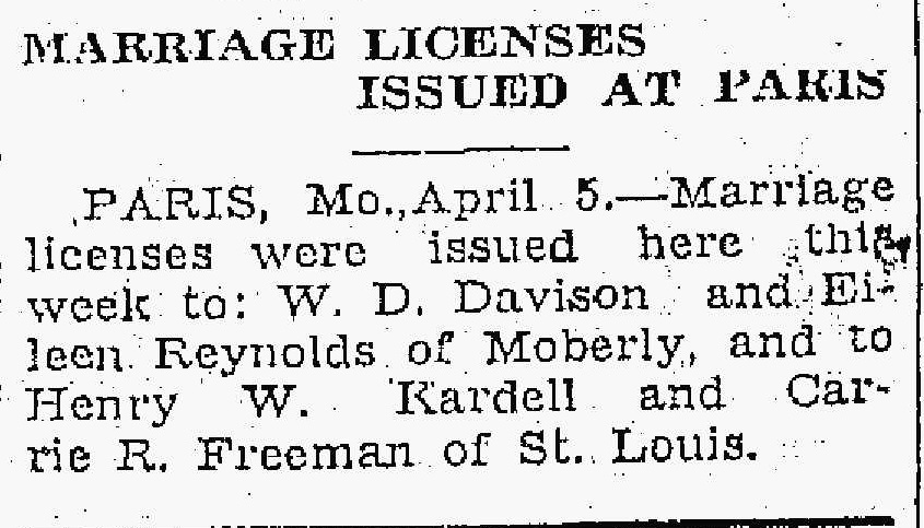 Henry William Kardell were married on May 15, 1909 in Howard, Missouri, USA. She died.