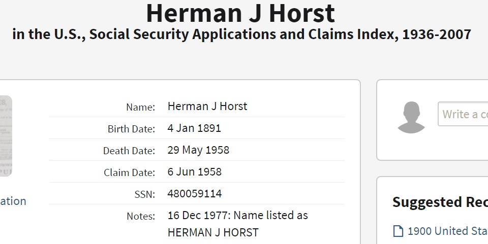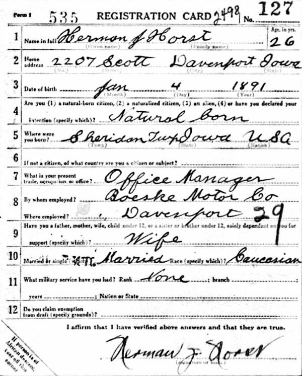 Herman John Horst was born on January 4, 1891 in Davenport, Scott, Iowa, USA. He and