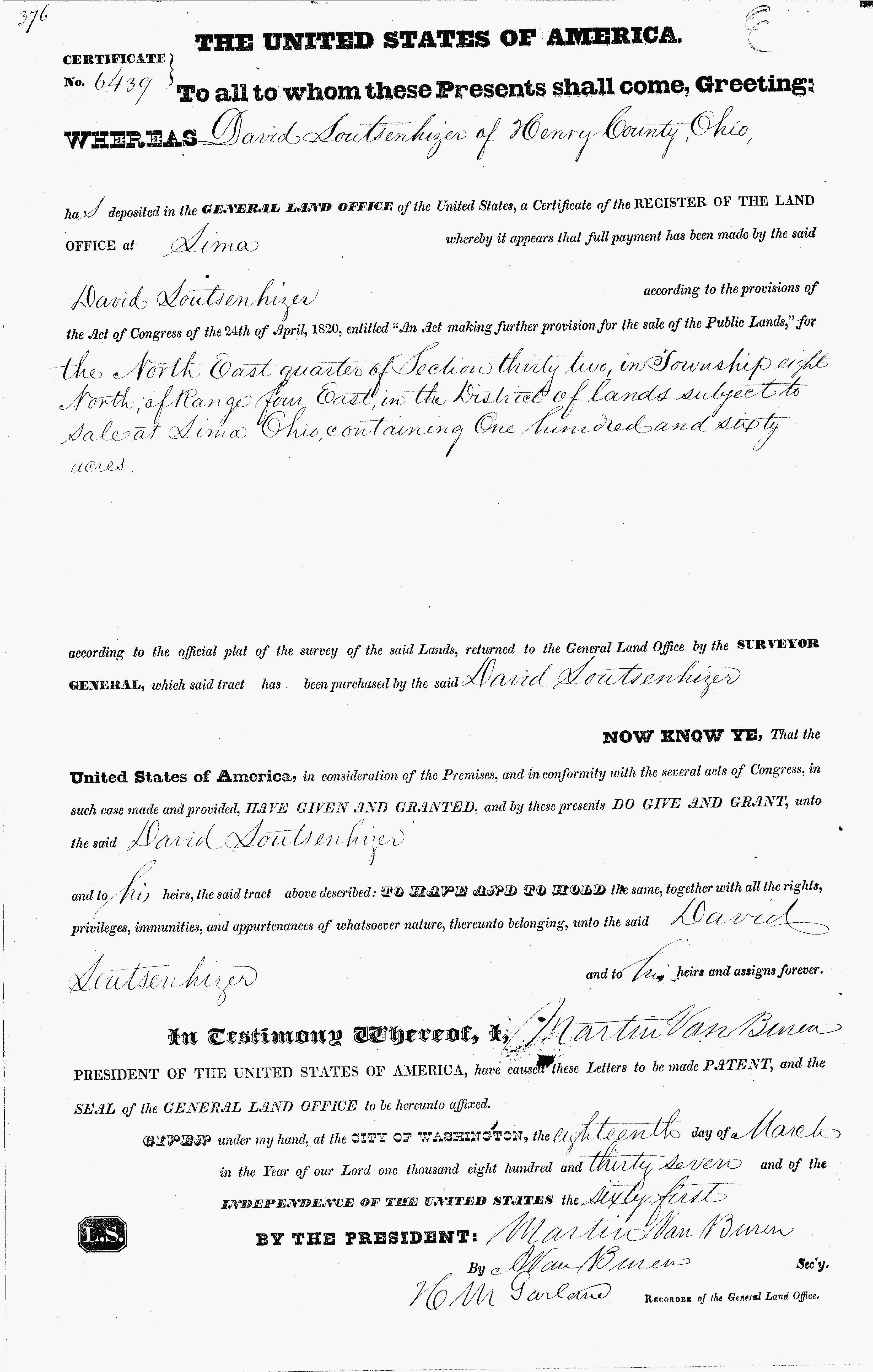 1837 Ohio Land Purchase