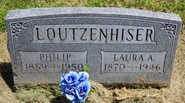 Philip M. Loutzenhiser were married on July 26, 1893 in Louisiana, Pike, Missouri, USA. She died on February 14, 1946, at age 75, in Atlas, Pike, Illinois, USA. She was buried in Miller Cemetery, Atlas, Illinois.
