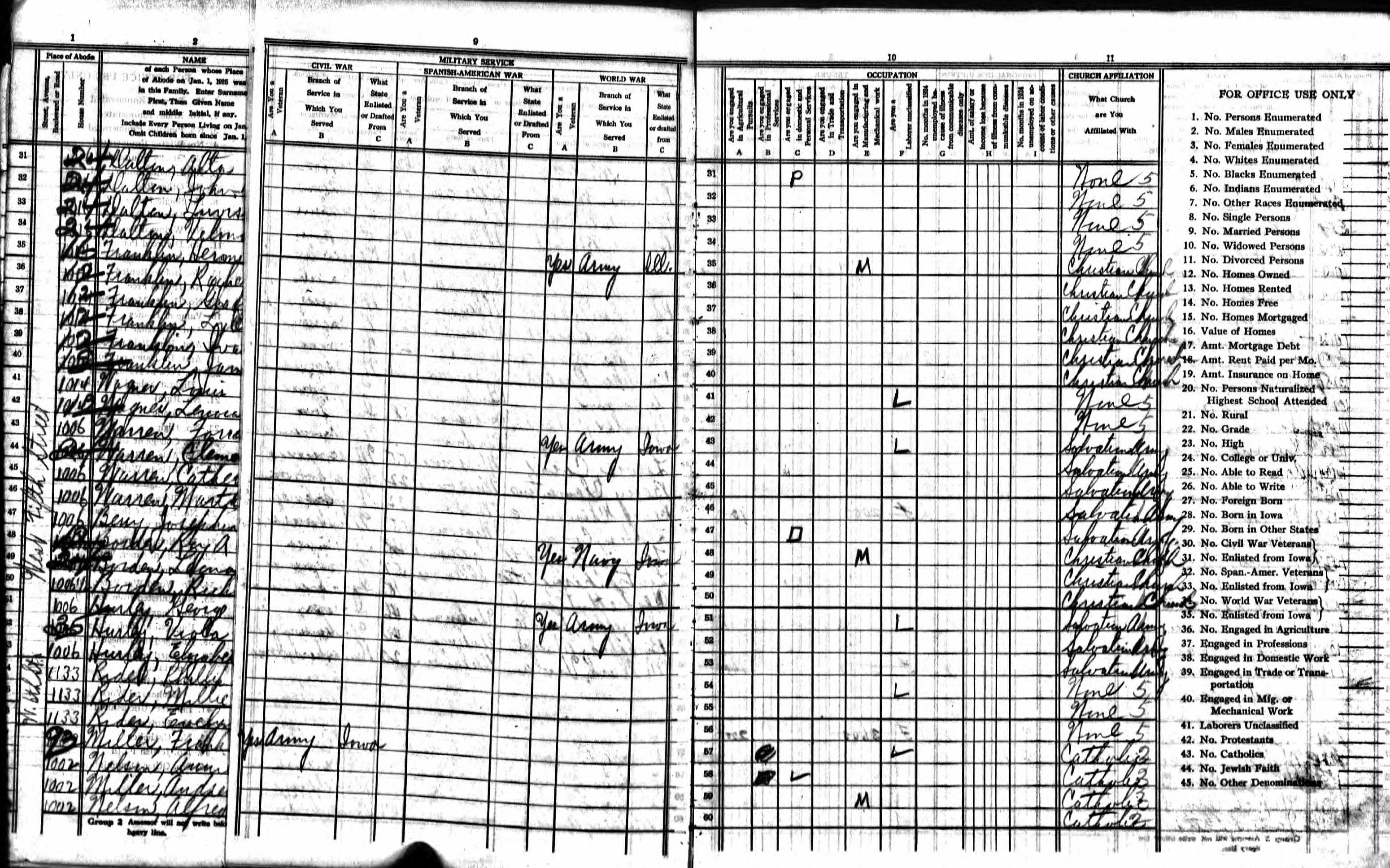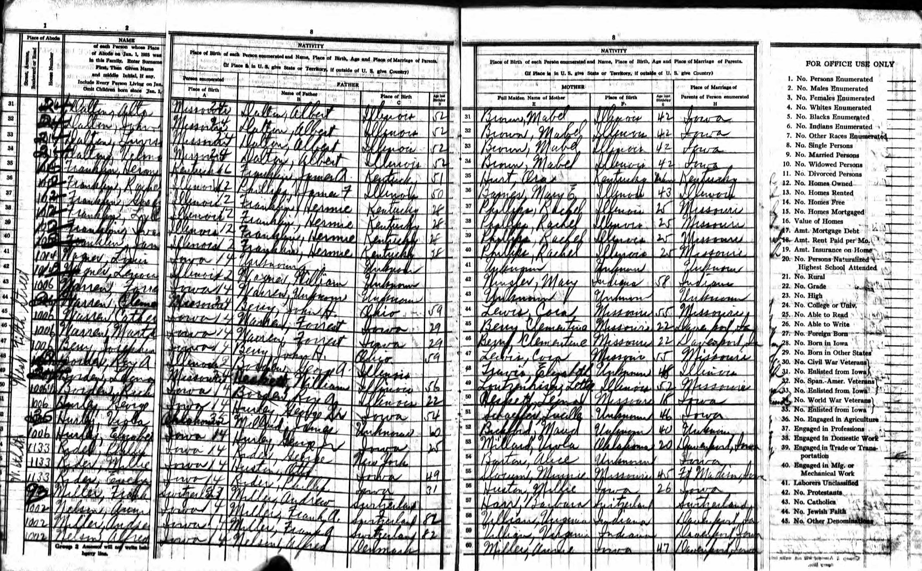 Borden Family 1925 State Census Iowa, Lines 48-50 Page 1