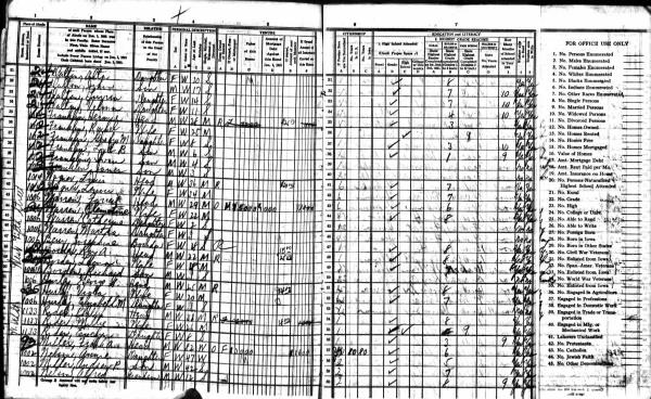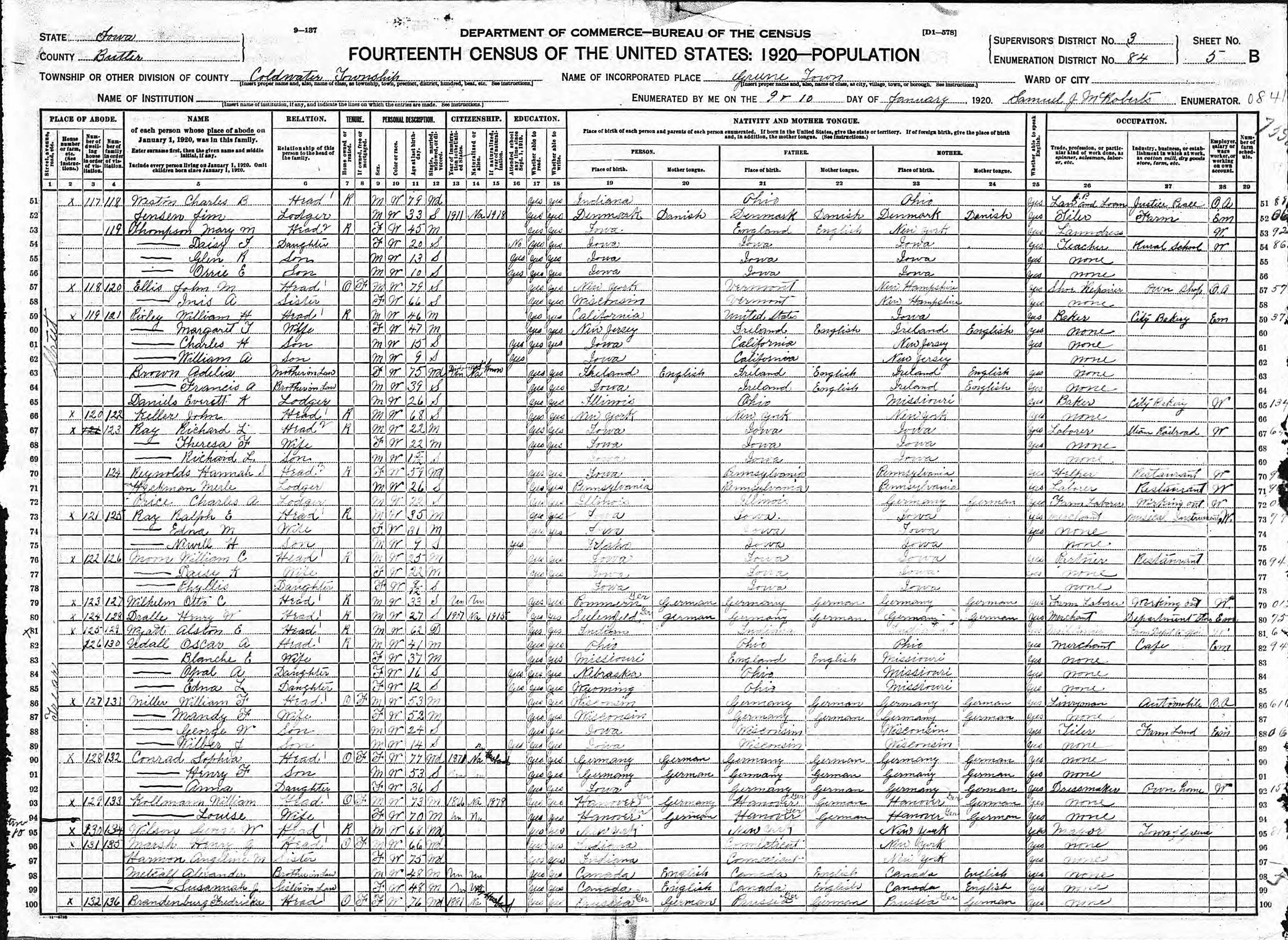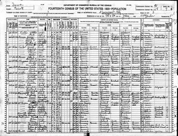 Ray Family 1920 Federal Census Iowa, Lines 67-69