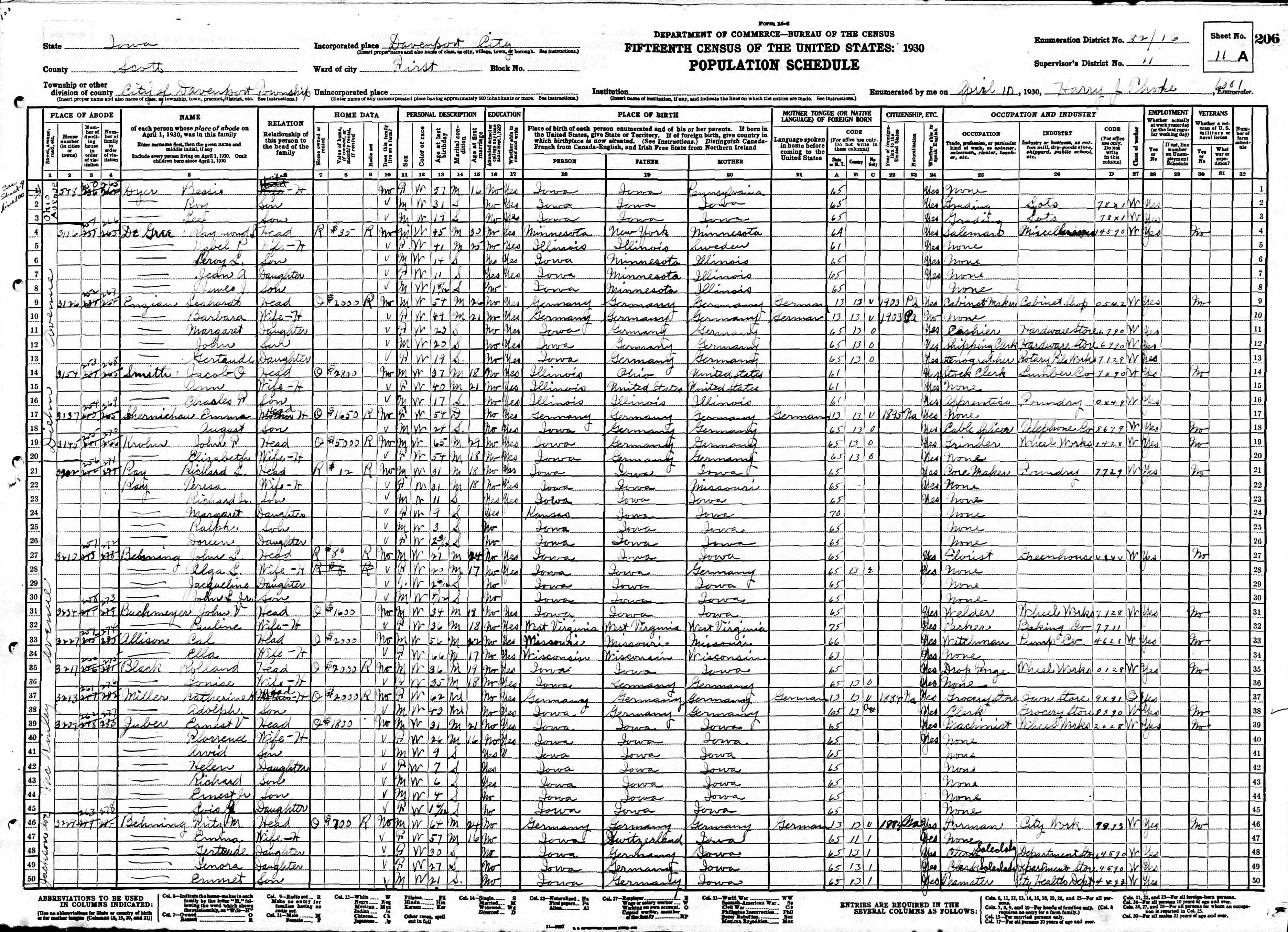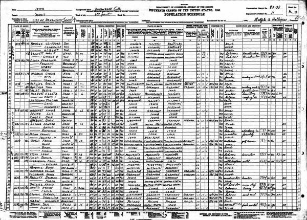 Heskett Family 1930 Federal Census Iowa, Lines 38-42