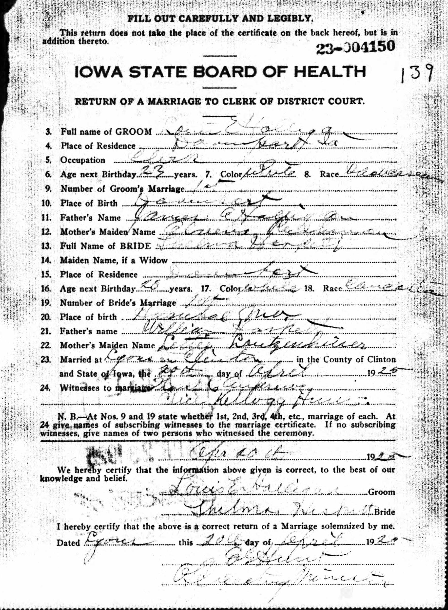 1925 Marriage Record