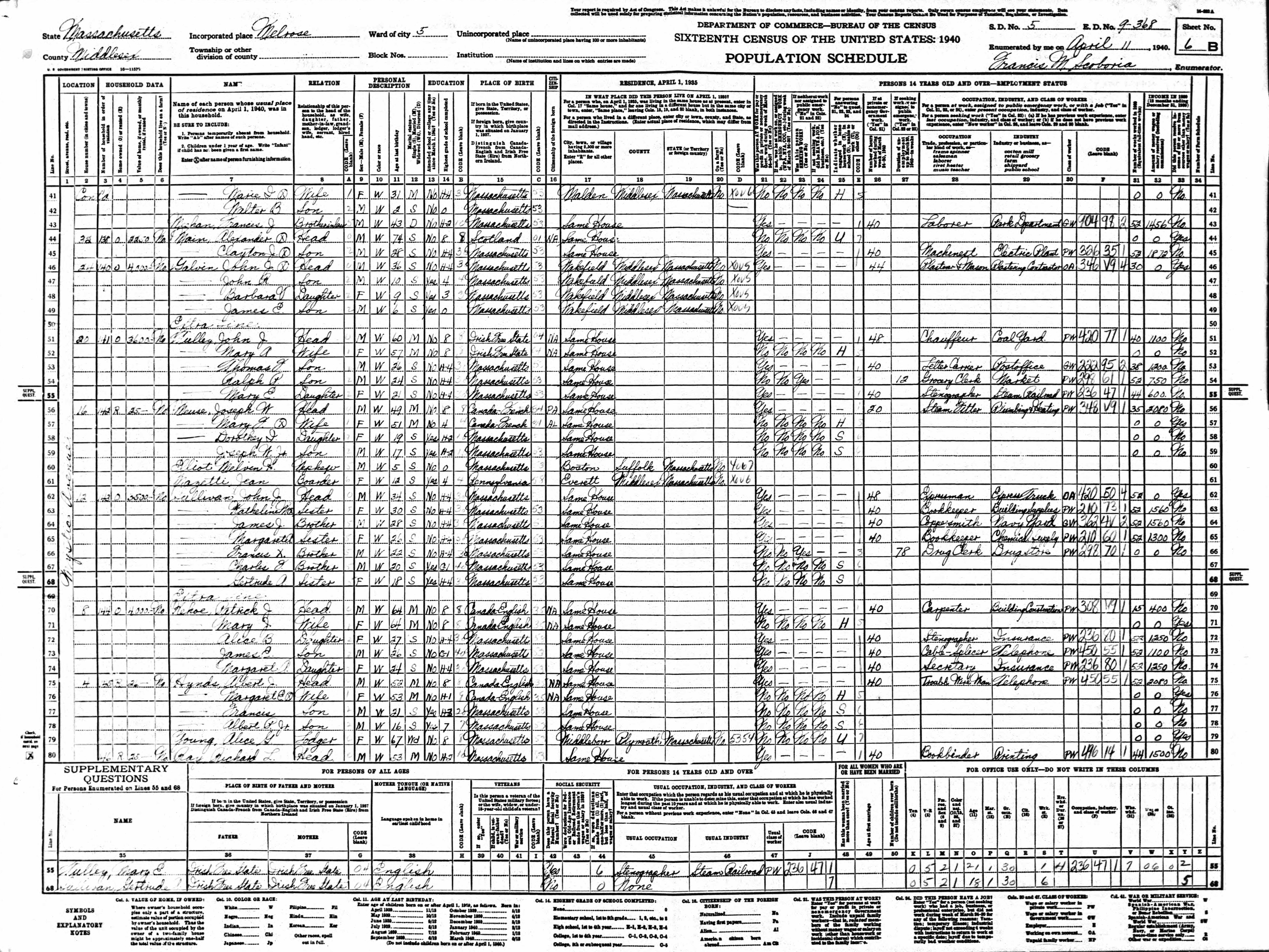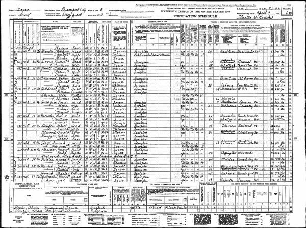 Halligan Family 1940 Federal Census Iowa, Lines 57-60
