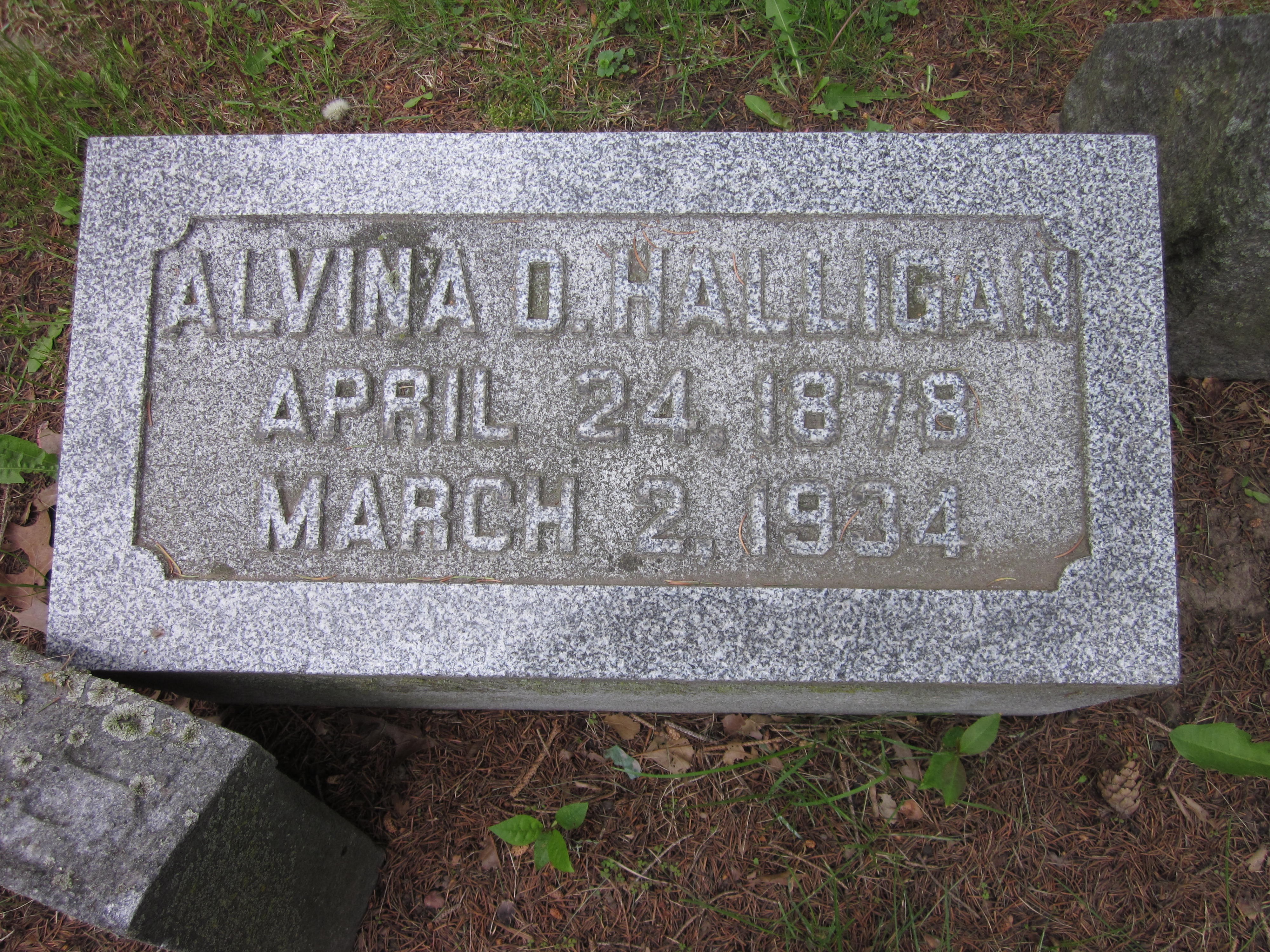 James Ambrose Halligan were married. She died on March 2, 1934, at age 55, in Davenport, Scott, Iowa, USA. She was buried in Mount Calvary Catholic Cemetery, Davenport, Iowa.