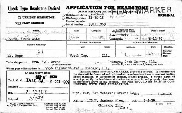 1939 Military Gravestone Application Record