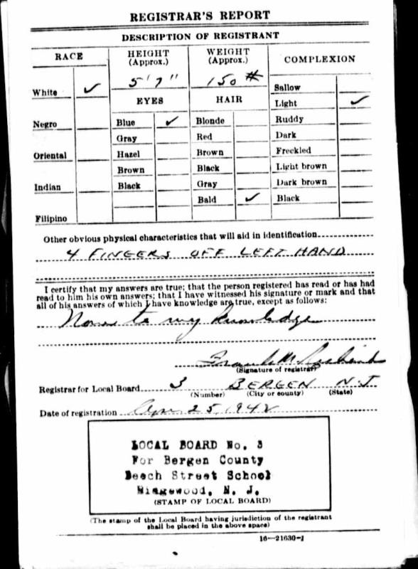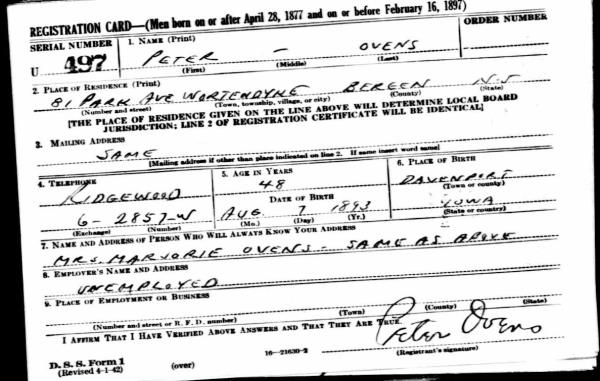 1942 World War I Registration Page 1