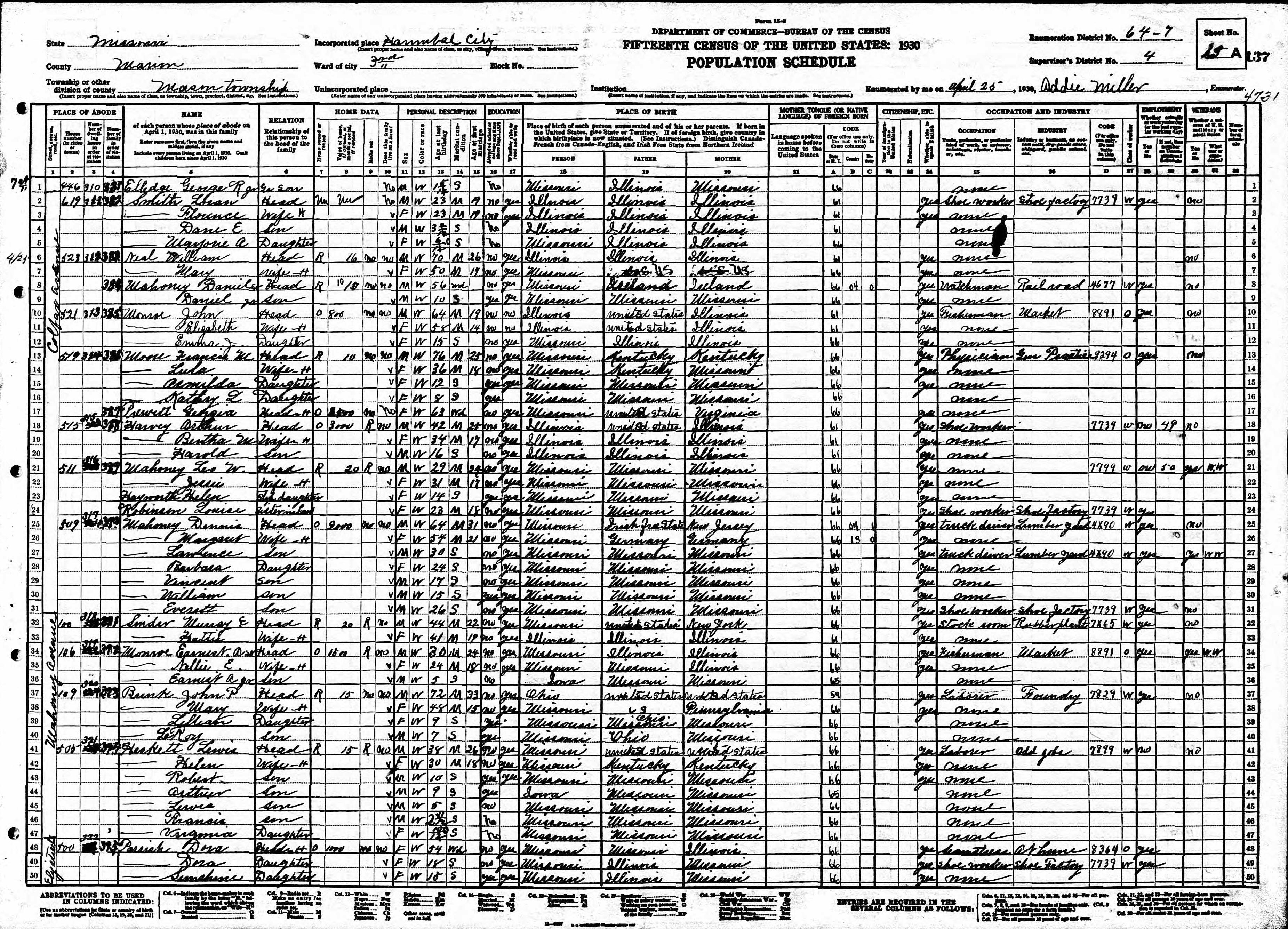 Heskett Family 1930 Federal Census Missouri, Lines 41-47