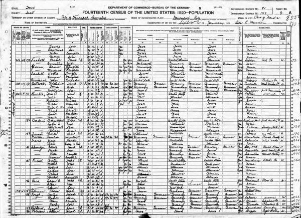 Kardell Family 1920 Federal Census Missour, Lines 92-97