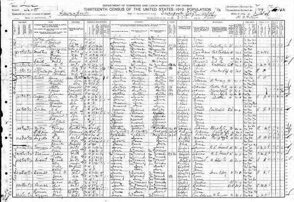 Kardell Family 1910 Federal Census Missouri, Lines 82-85
