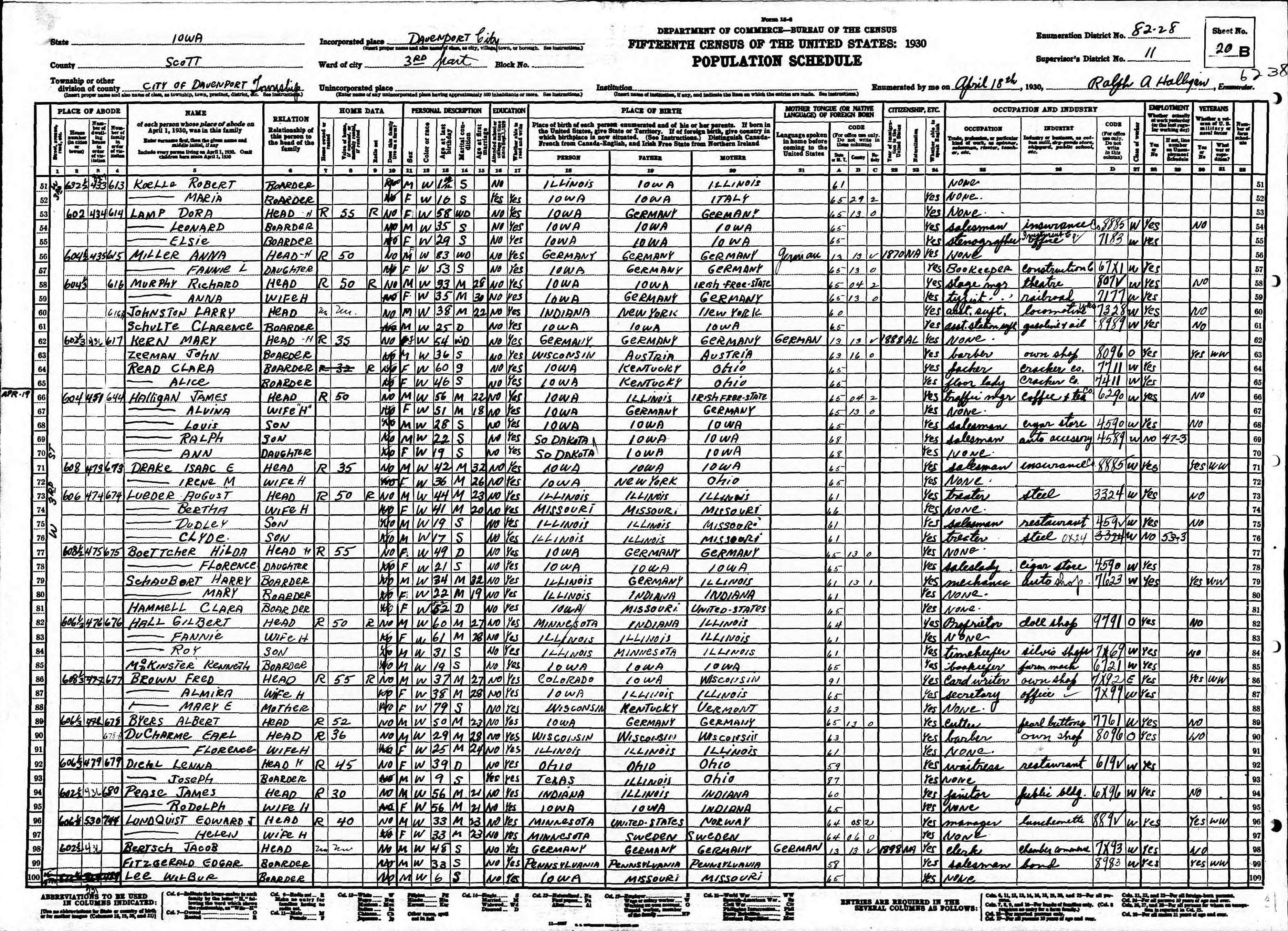 Halligan Family 1930 Federal Census Iowa, Lines 66-70