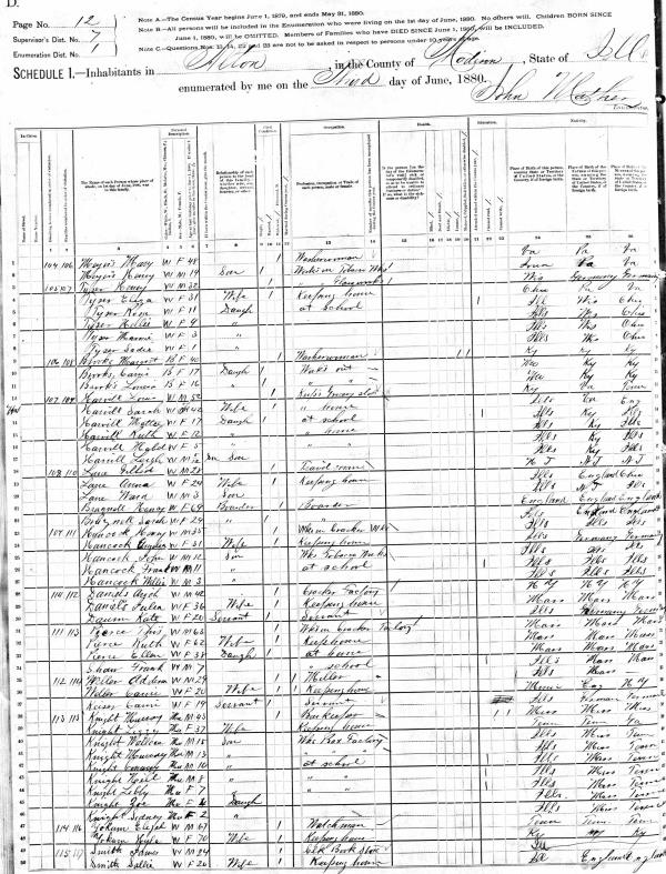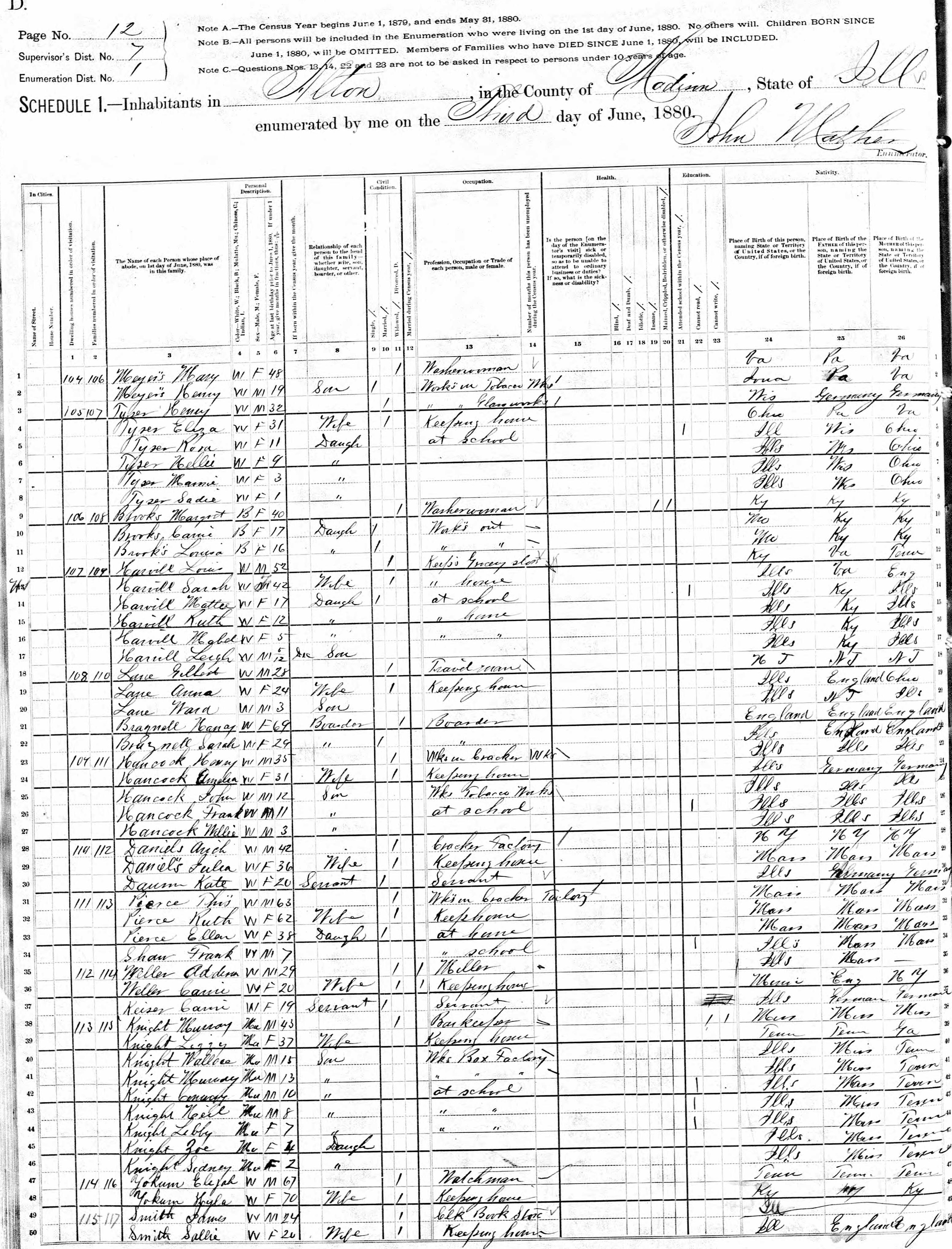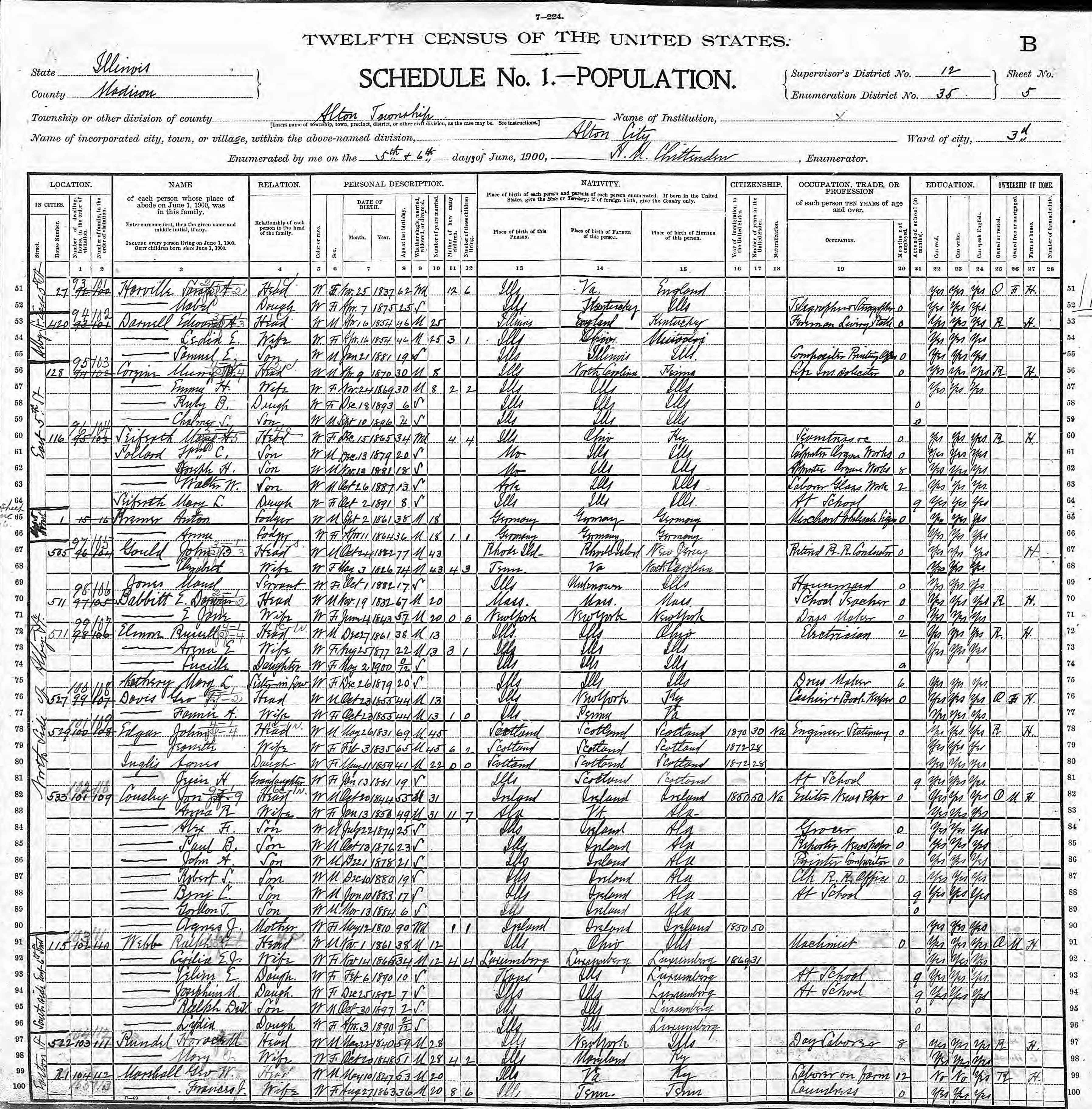 Harville Family 1900 Federal Census Illinois, Lines 51-52