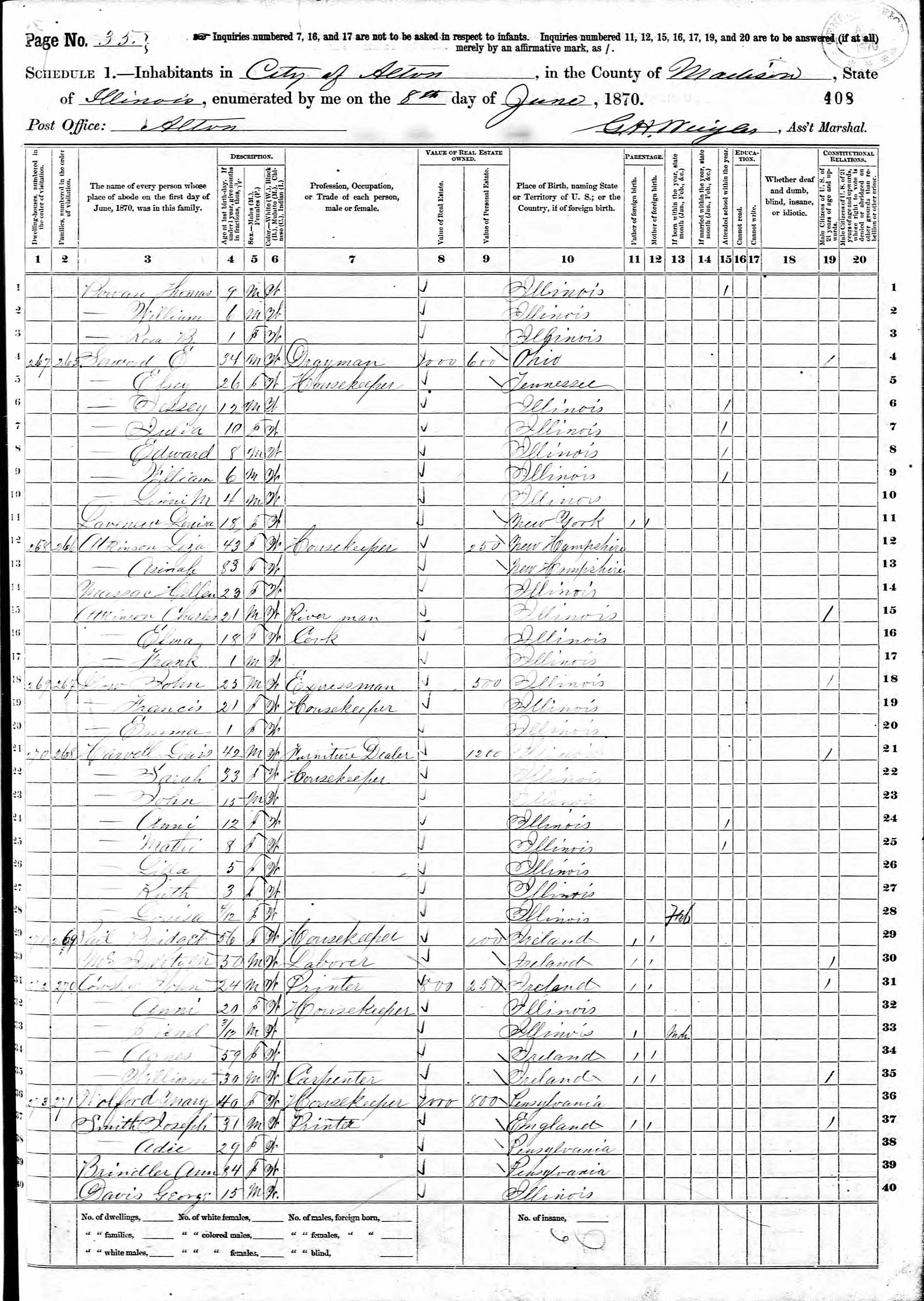 Harville Family 1870 Federal Census Illinois, Lines 21-28