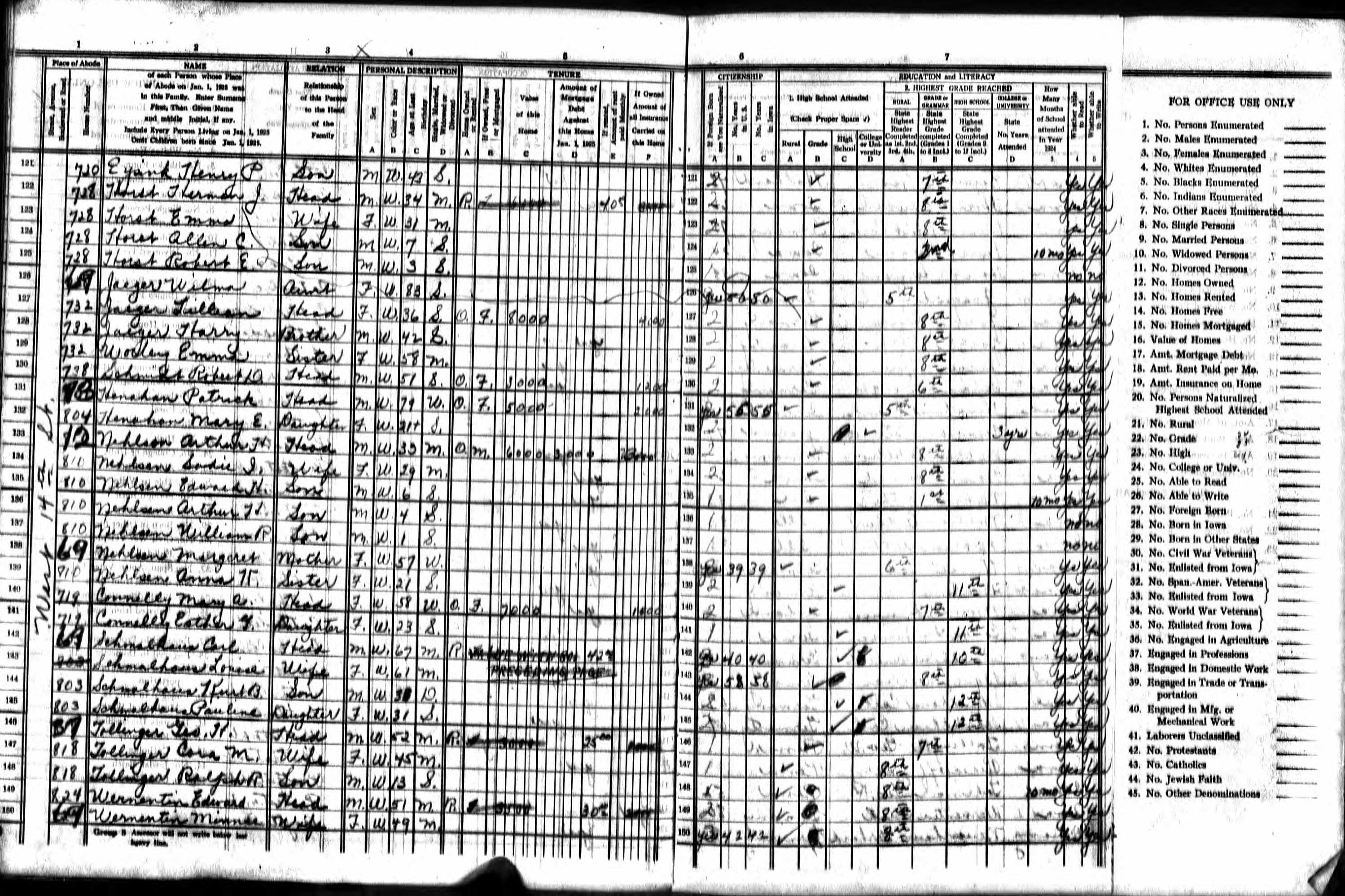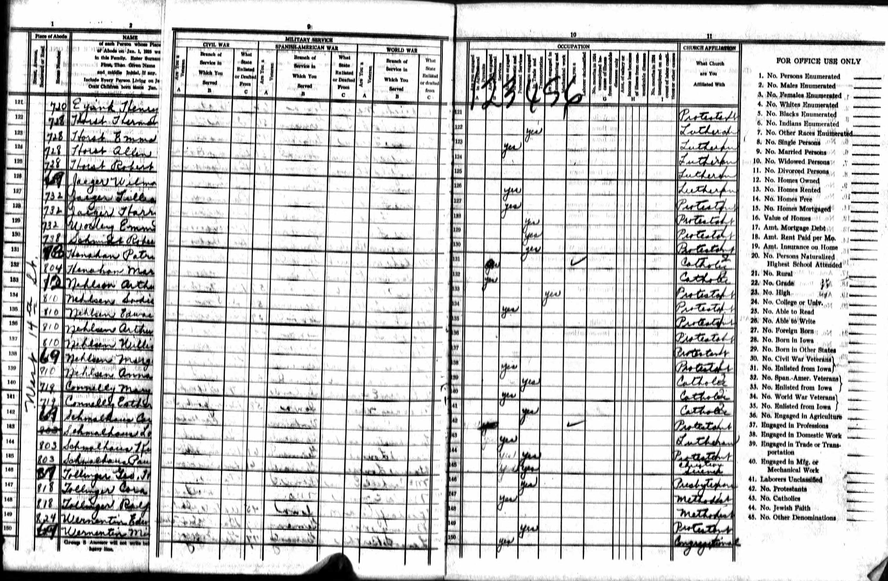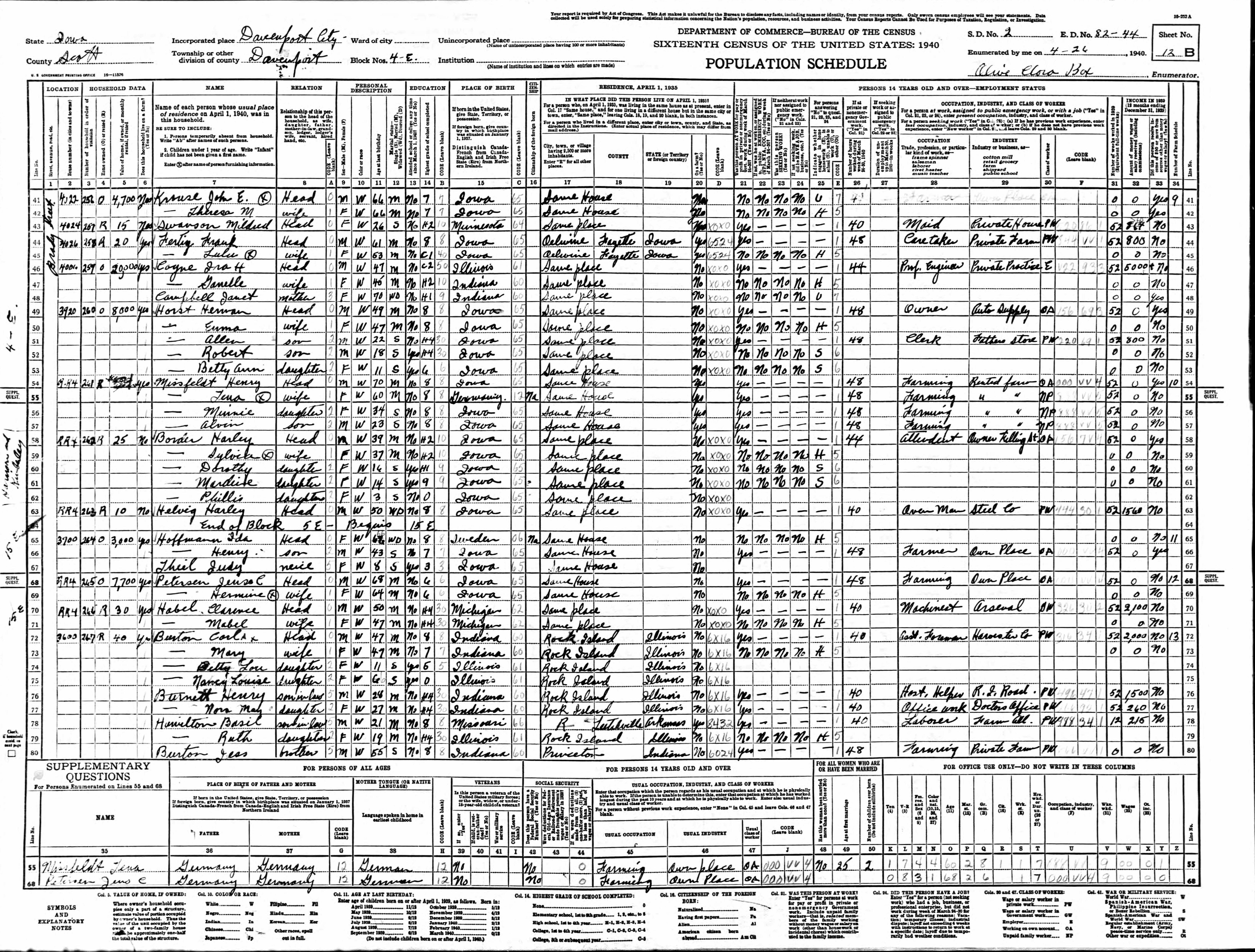 Horst Family 1940 Federal Census Iowa, Lines 49-53