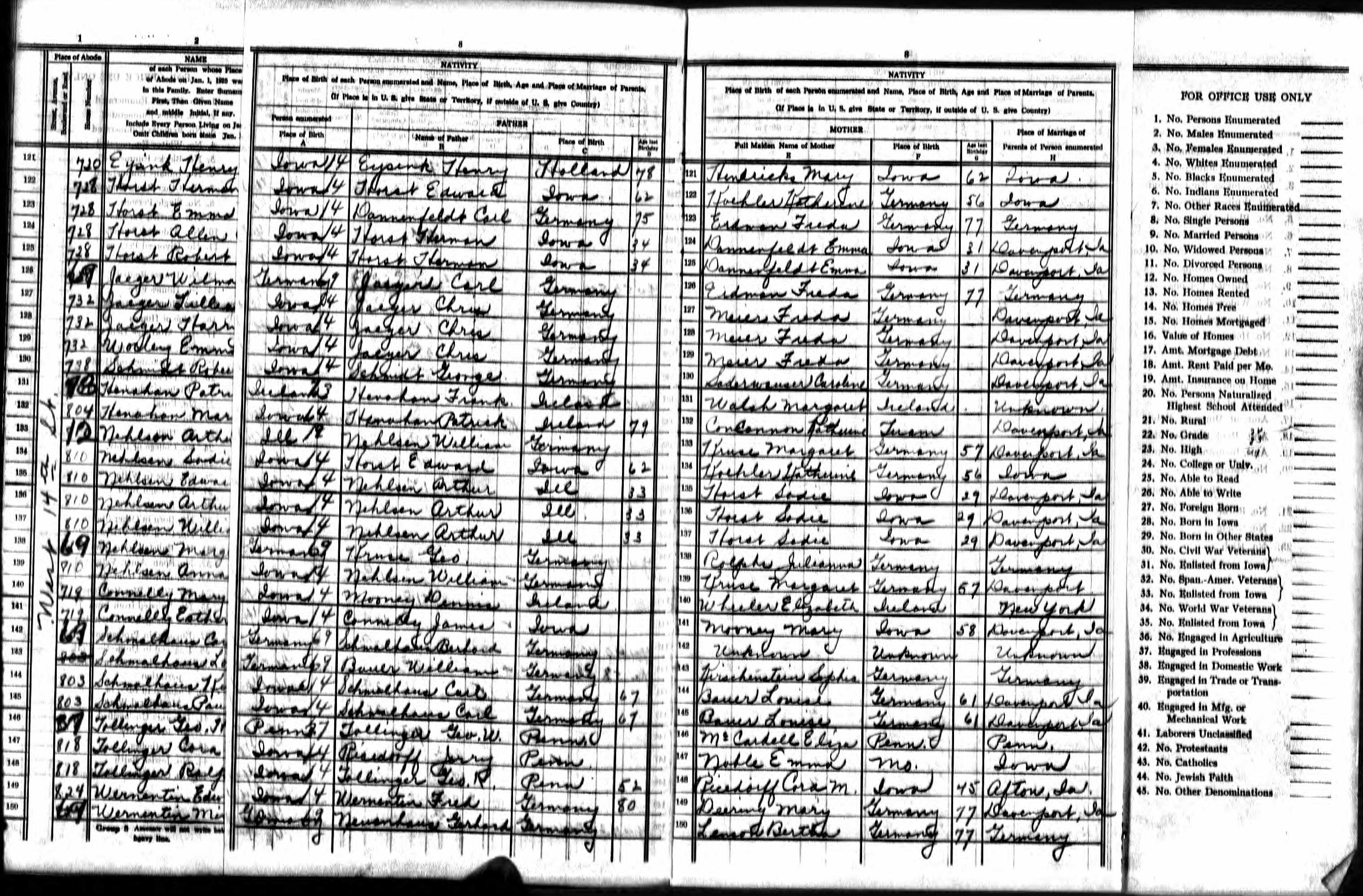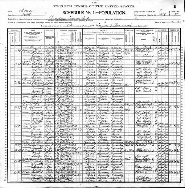Horst Family 1900 Federal Census Iowa, Lines 64-72
