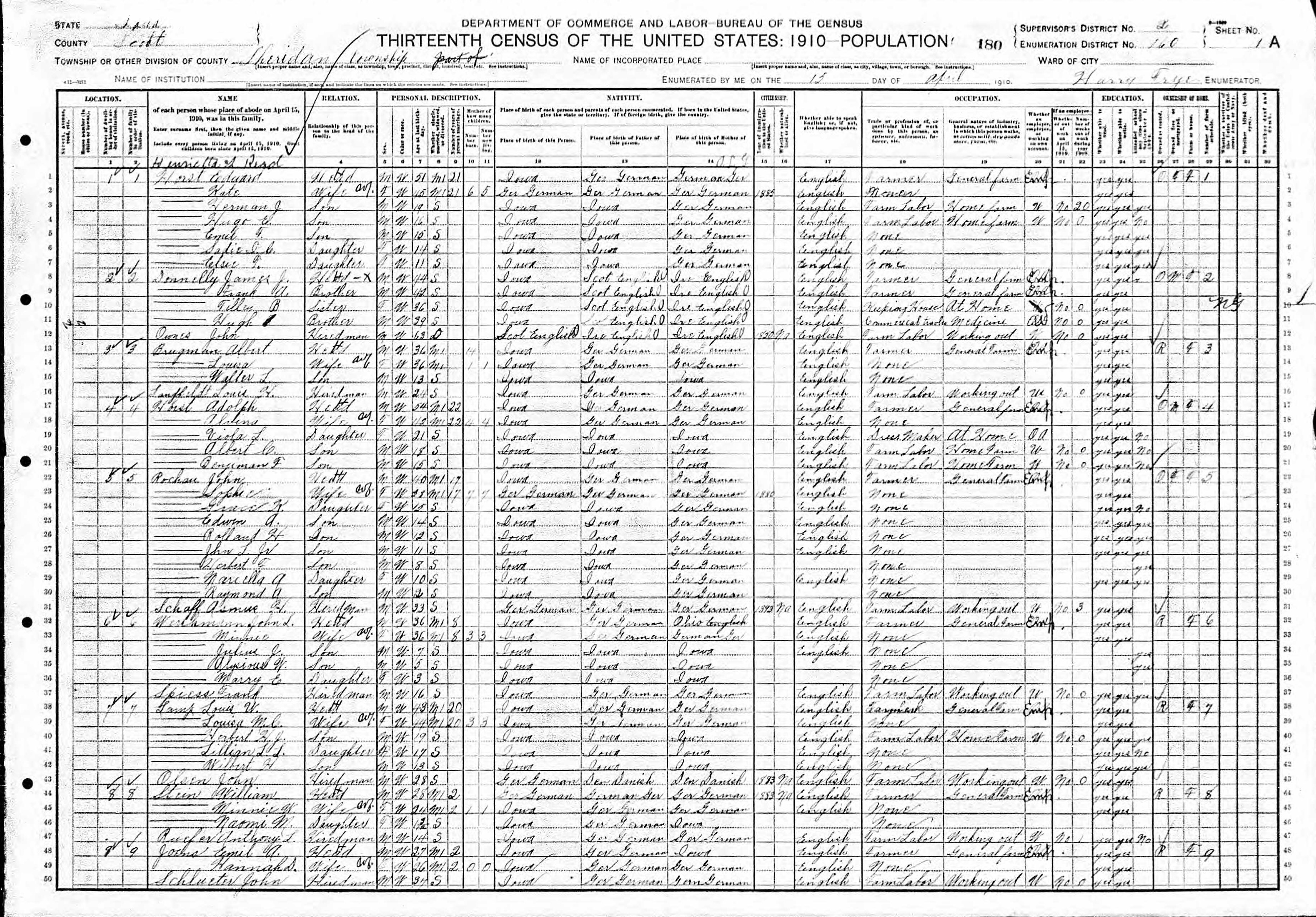 Spach Family 1910 Federal Census Indiana, Lines 9-14