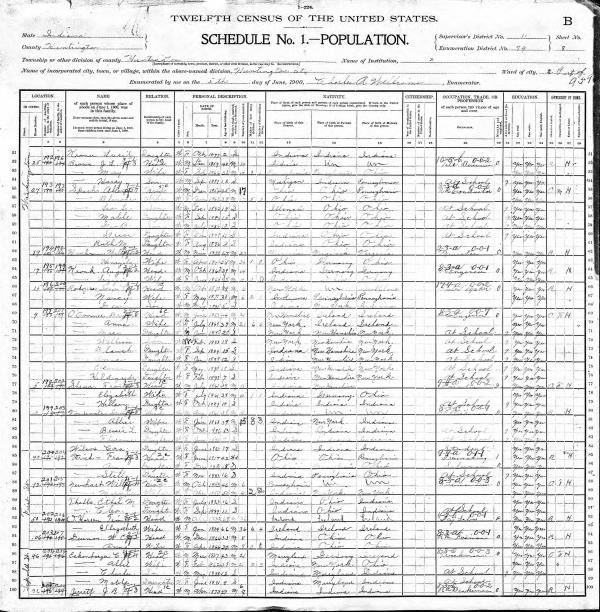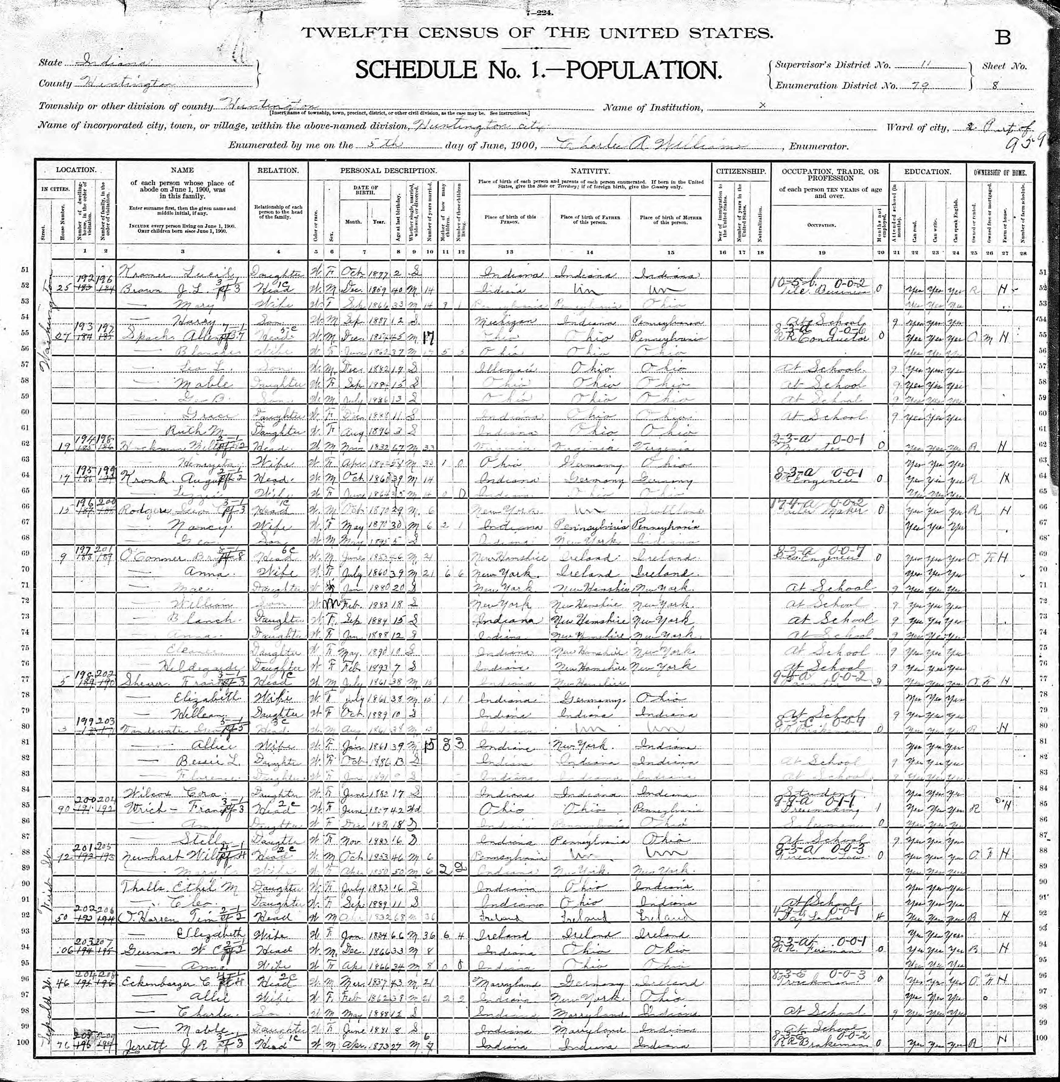 Spach Family 1900 Federal Census Indiana, Lines 55-61