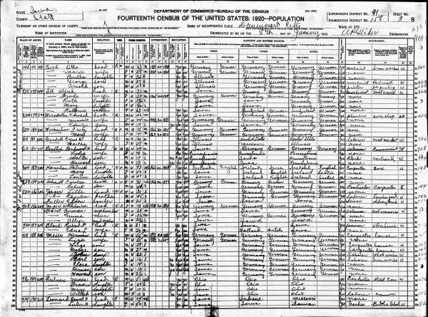 Horst Family 1920 Federal Census Iowa, Lines 81-83