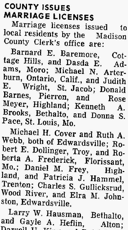 Walter Neal Hausman were married on June 15, 1985 in Bethalto, Madison, Illinois, USA.