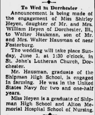 Shirley Valeria Heyen was born in 1925 in Dorchester, Macoupin, Illinois, USA. She and