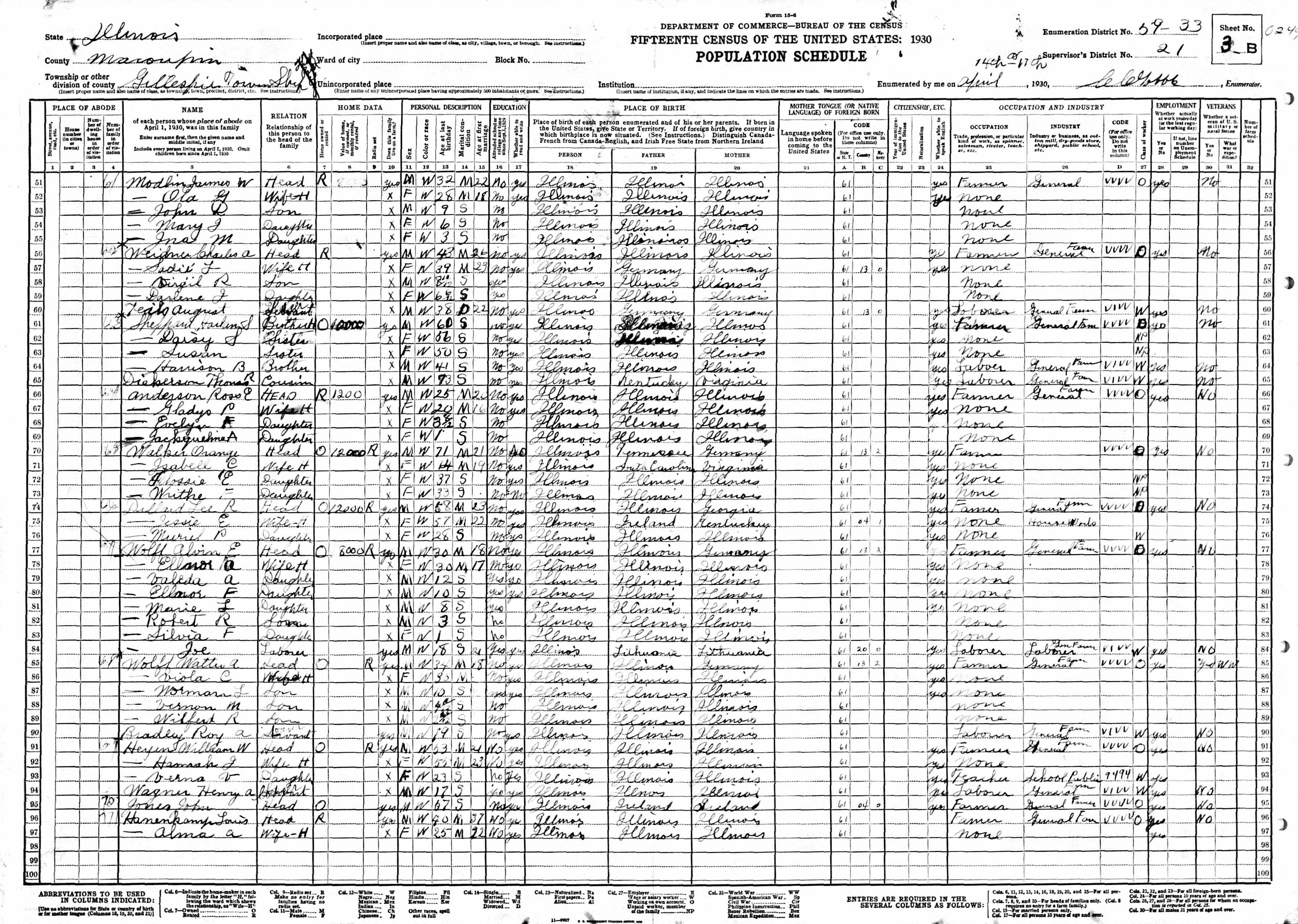 Wolff Family 1930 Federal Census Illinois, Lines 85-89