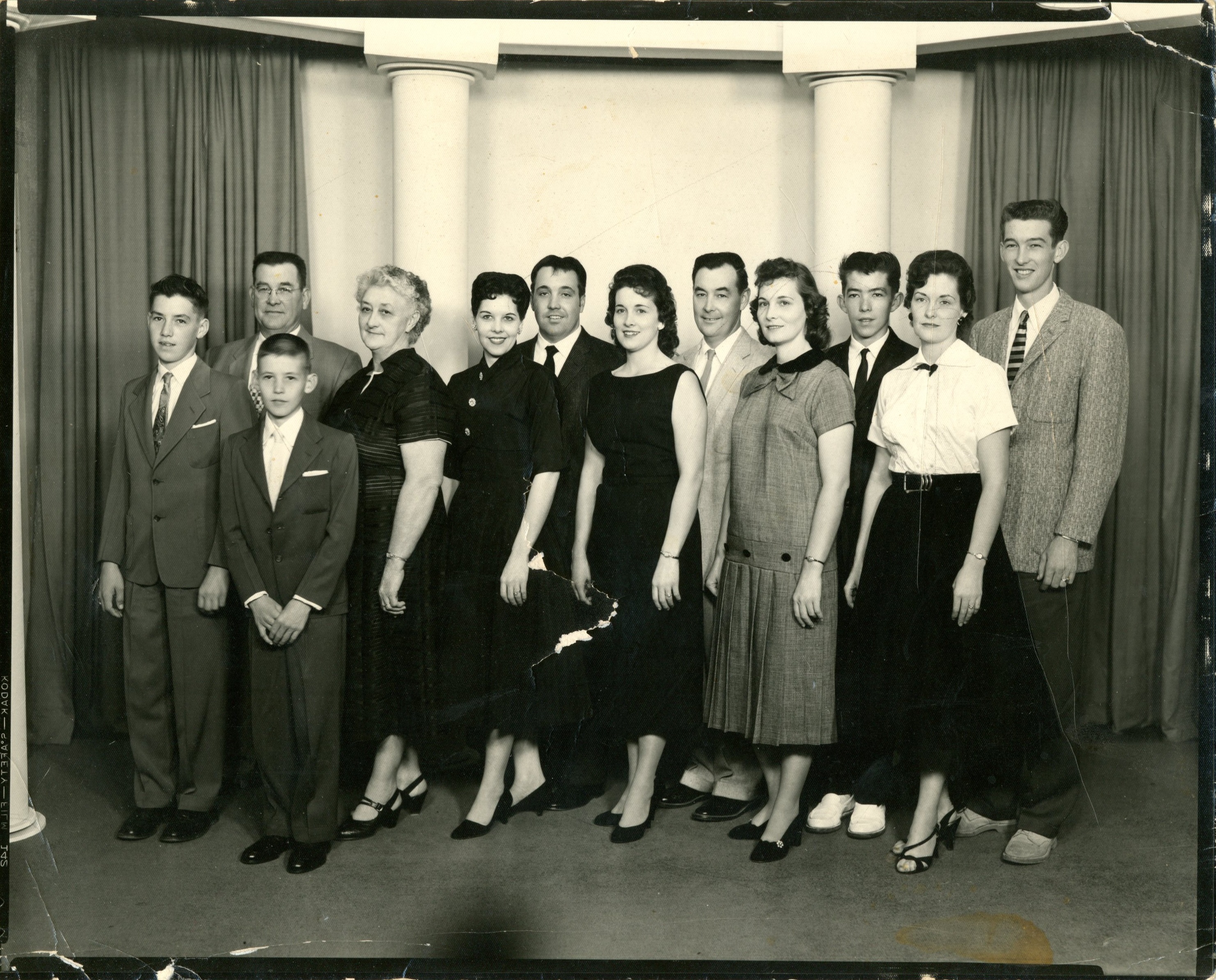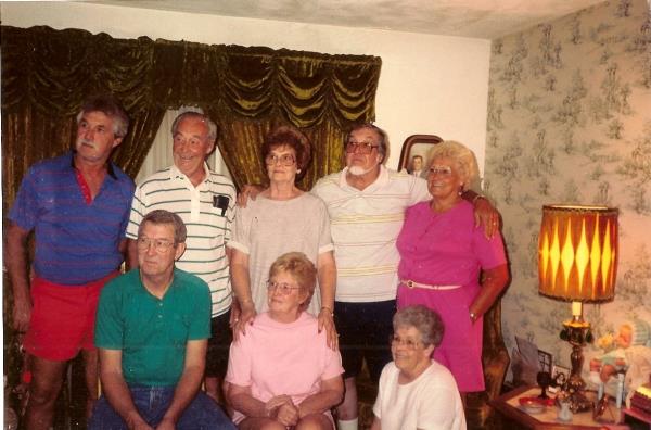 Bill, Walter, and Dave Hausman, Anna Ruth Atchison, Juantia, Bob, Lois, Walter, Pearl, Larry, Vernetta, and Don Hausman