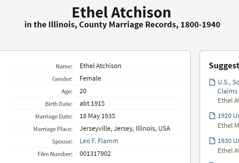 Ethel M Atchison were married on May 18, 1935 in Jerseyville, Jersey, Illinois, USA. He died on March 22, 1965, at age 53, in Illinois, USA. He was buried in St. Francis Xavier Cemetery, Jerseyville, Illinois.