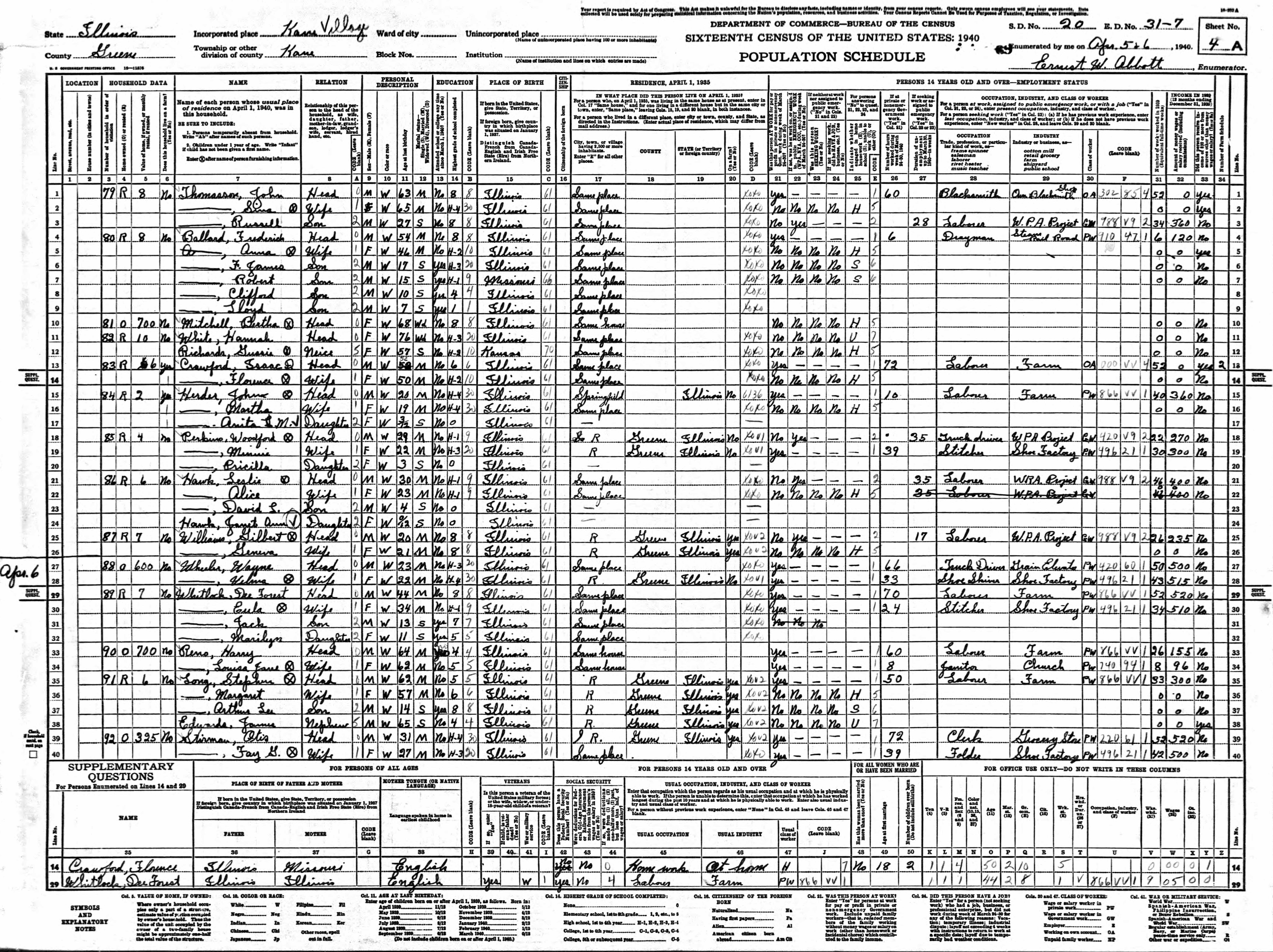 Whitlock Family 1940 Federal Census Illinois, Lines 29-32