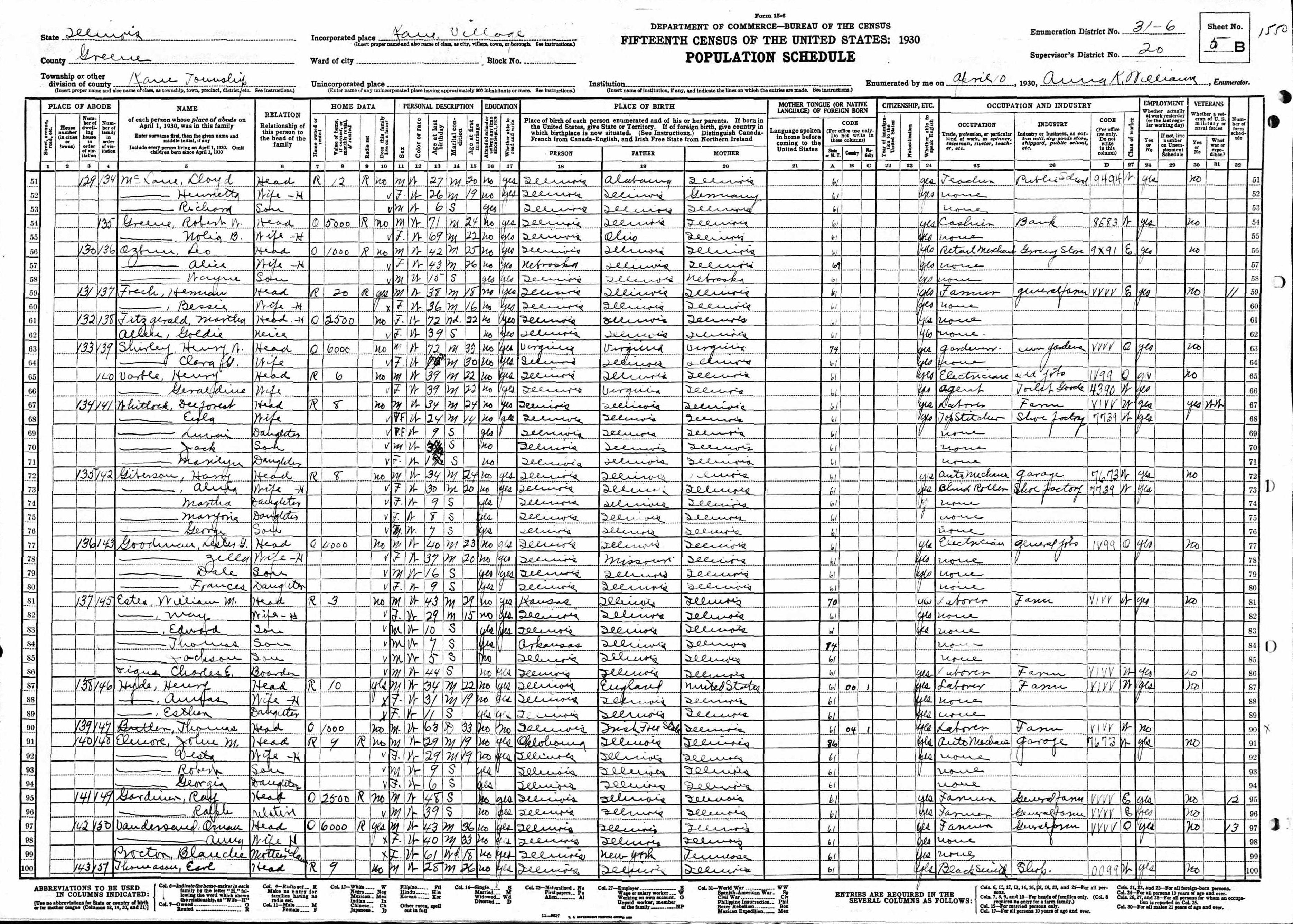 Whitlock Family 1930 Federal Census Illinois, Lines 67-71