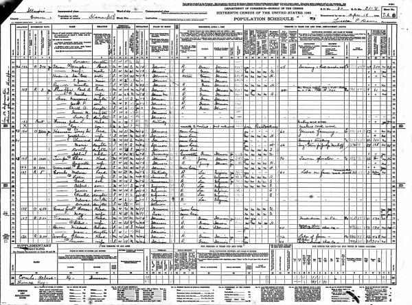 Flamm Family 1940 Federal Census Illinois, Lines 75-76