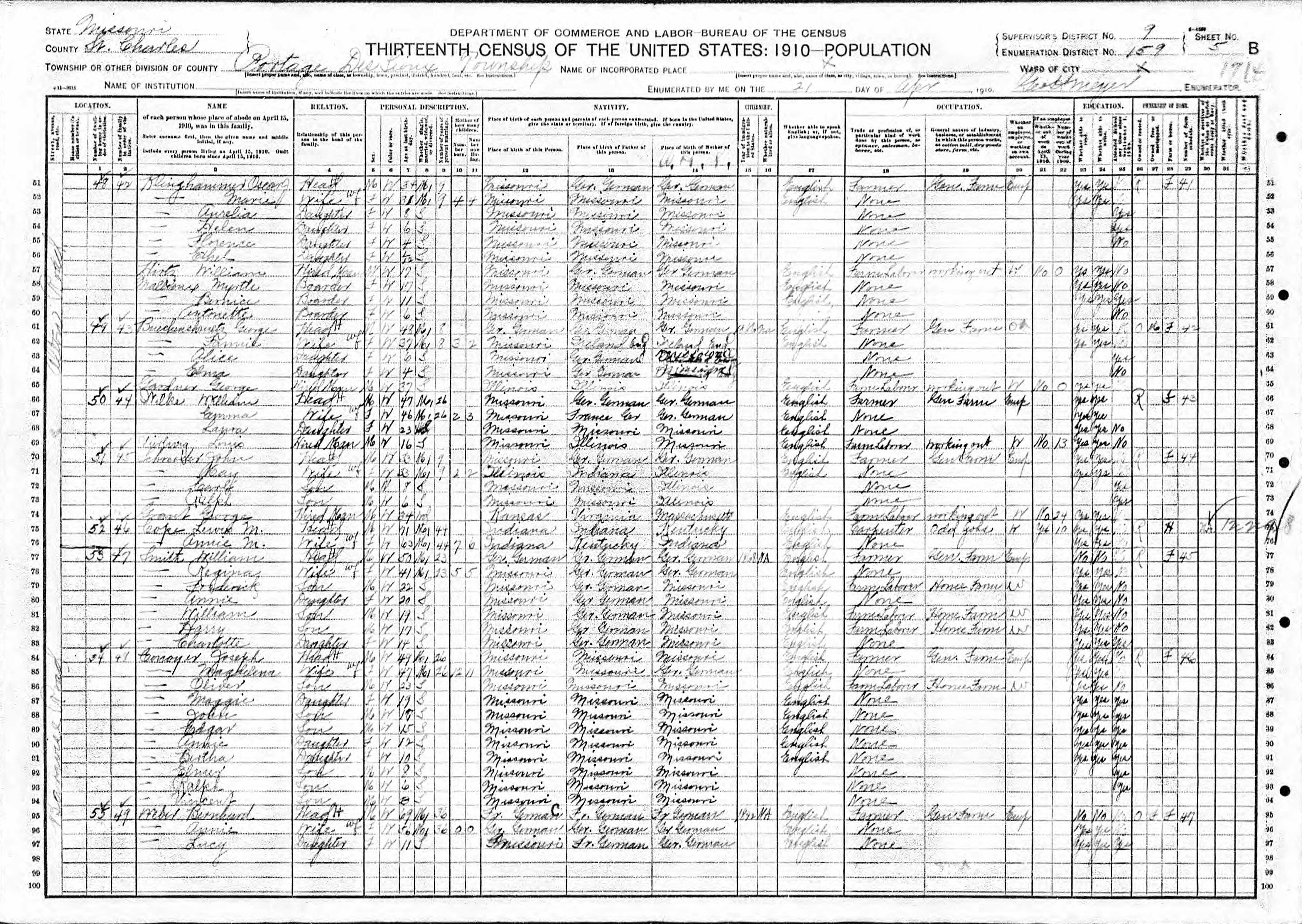 Connoyer Family 1910 Federal Census Missouri, Lines 84-94